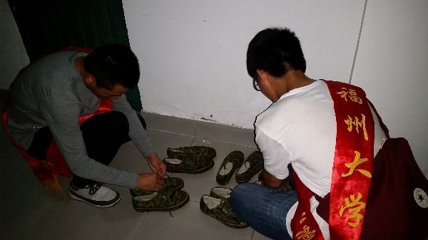 在大一新生军训过后,同学们剩下的军鞋便成了“食之无味,弃之可惜“的鸡肋,为了帮助大山里的贫困人民,也为了同学们的爱心捐献有一个渠道,青年志愿者协会主办了这次军鞋捐献活动。在听说这次活动后,同学们主动地把鞋子整齐排列在门口,更有细心的女同学在捐献之前还把军鞋清洗干净。在活动进行到6楼时,有一位来不及捐献的同学特地将鞋子从5楼送到6楼来。也有同学将自己的旧衣物交给青协成员,让他们替自己献出一份爱心。同学们的爱心是得以表达了,不过却有着自己的烦恼,对着宿舍里损坏的物品,实在是无可奈何。为了解决同学们的烦恼,这时候权益部的“维修进宿舍”活动就来啦!部员们跑上跑下,一个个的敲开门,详细询问同学们有什么需求,细微之处也不放过,主动询问,细心记录,耐心解答,得到了同学们的一致好评。