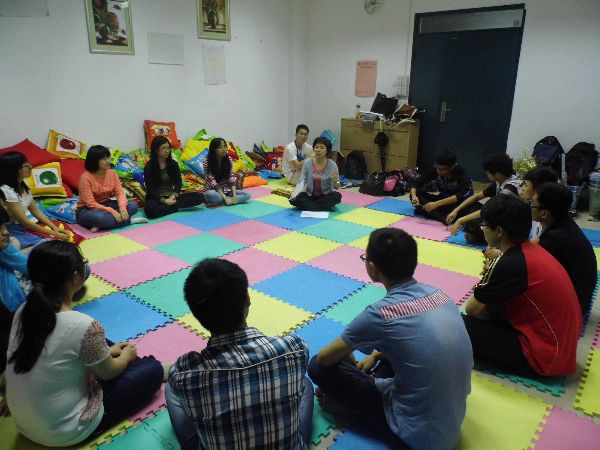 潘老师将15位同学分为3组,通过每组成员进行游戏的形式对同学们进行辅导。活动伊始,潘曦老师通过一些热身的小活动让同学们得到了互相认识以及进入了接受辅导的状态。