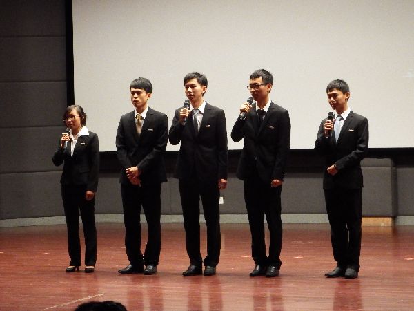 ·团委学生会六大中心,共十八个部门的代表按顺序依次上台宣讲,风格或幽默,或深沉,或激情,比如职协,楼委会,女生部,学习部等部门就充分发扬了娱乐精神,让新生们的笑声此起彼伏,而秘书处,辩论队等部门却以深情的演讲打动了在场的听众,实践部,科技部,体育部等部门则通过慨激昂的论说震撼着台下的人们,除此之外,文化部艺术团的钢琴、提琴和舞蹈表演亦是一大亮点,博得了众人的喝彩。宣讲会最后,2013级学生会成员集体合照,本次活动圆满结束。