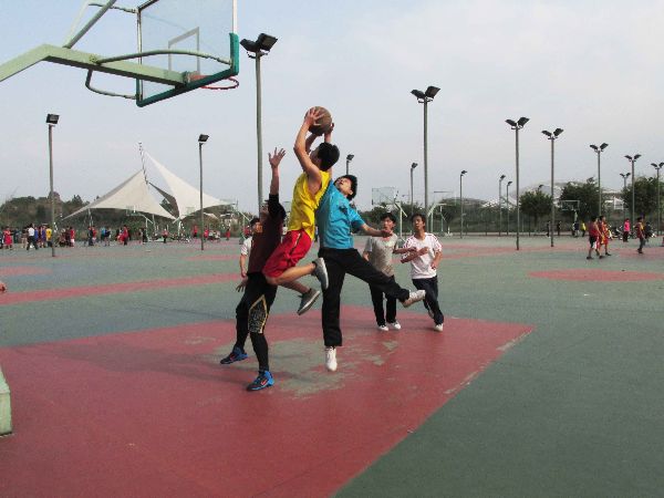 2点30分,“V5”杯运动会的第一项活动——宿舍篮球赛准时开始了。春季的阳光洒在朝气蓬勃的同学们身上,映衬着他们矫健的身姿。场下的同学们时不时为一个精彩的上篮动作或是优美的投球姿势欢呼喝彩。该运动会还为女生们“私人定制”了女生投篮的运动项目。在热心的男生的帮助下,投篮的女生们成为篮球场上一道亮丽的风景线。而进一步展现“V5杯”运动会魅力的是夹球接力跑和拔河比赛。比赛中队员们的互相调侃让场面显得更加和谐。