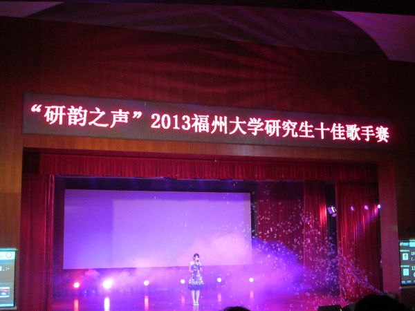 研究生十佳歌手决赛在图书馆博学厅隆重举行。担任本次评委的有:校艺术团副团长潘超老师,人文学院音乐系的郭蓉老师、李妮老师等以及来自各个学院的大众评委。