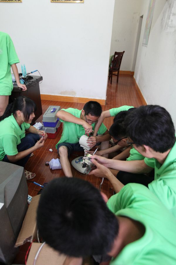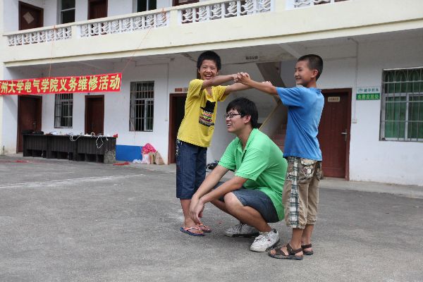 经过7个小时的跋涉,下午三点半,清流实践队顺利抵达清流县高赖村。受到了当地村民的热烈欢迎。村支书罗邦良接待了实践队员们,并表示前几年实践队的到来给他们的生活带来了欢笑与便利。希望我们这次能多留些日子,给他们带去更多的知识和乐趣,队员们倍受鼓舞。虽然经过了长时间的舟车劳顿,但实践队的队员们仍然一下车便马不停蹄地开展各种工作。有的布置义务维修活动的场地;有的对实践队物资进行整理;有的则热火朝天地开始打扫起了宿舍,仅一会儿时间,实践队便驻扎完毕。此时,村里的孩子们闻讯都跑来参与我们的活动。有的抱着家里的坏电器来找维修队员帮忙;有的好奇地围观着志愿者们的一举一动;而有的则不怯生地参与到实践队员们安排的投篮游戏,院子里一片其乐融融。