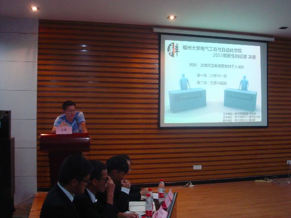 2013级1班、4班、5班和6班等4支队伍,辩题为“逆境、顺境哪一个更有利于成长”。在两场比赛中,正反双方向观众和评委们展示了他们渊博的知识、敏锐的思维,并以严谨且不失风趣幽默的语言,连珠的妙语,博得现场的阵阵喝彩。最终,13级4班以666分荣登桂冠,13级5班、6班和1班分别获得本场比赛的2、3、4名,其中13级1班的吴嘉琪同学和13级5班的苏捷同学获得了最佳辩手的称号。