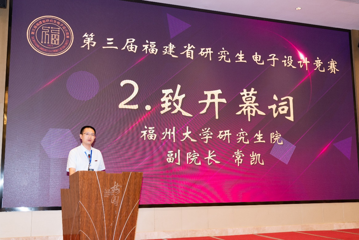 围绕自身学科特点,面向社会需求,走产学研合作、教学科研与工程实践问题相结合的办学特色之路,培养了大批基础扎实、知识面广、适应能力强的高级电气、控制等领域的专业人才。最后常副院长表达了对今年第三届福建省研究生电子设计竞赛的成功举办的云霓之望,希望通过此次大赛能加强校企科研合作的同时,为推动我国“卡脖子”关键核心技术的研发选拔人才,同时也对我省各高校电子类相关学科研究生培养创新意识、增强团队精神、寻找差距定位、提升实践能力起推动作用。希望各参赛选手能把握机会、勇于挑战自我、赛出风格、赛出水平、赛出精彩。