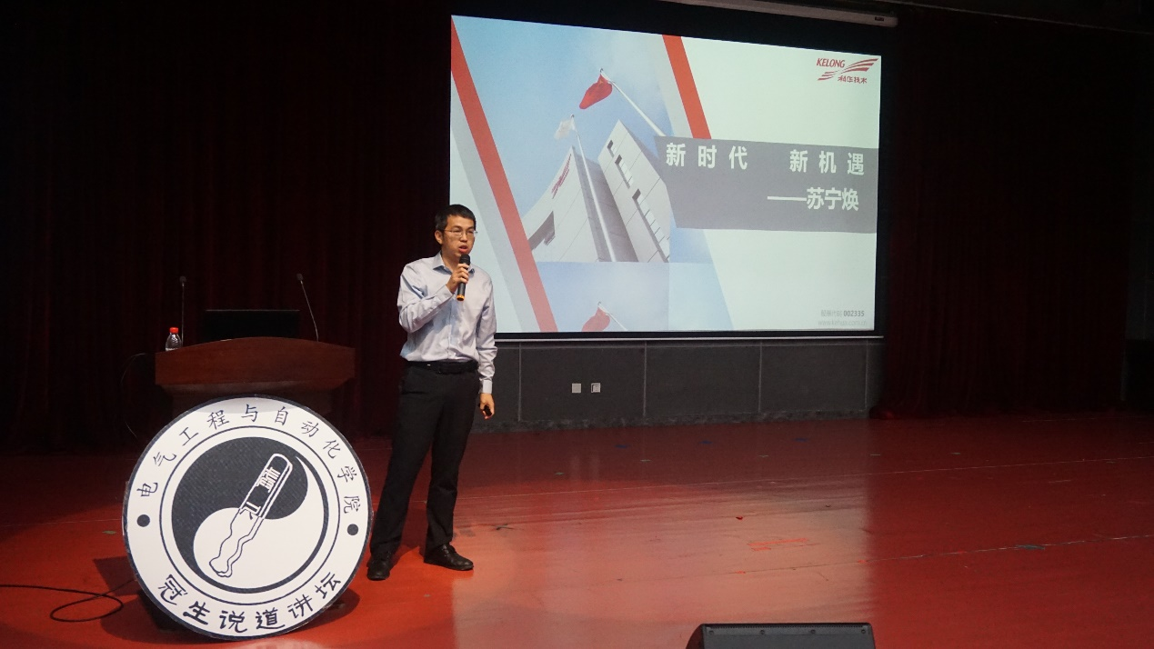 首先科华数据股份有限公司技术中心总经理助理苏宁焕先生以电气的发展历史为开始,以“十四五”规划为切入,针对现有的中国所面临的情况提出了中国未来的发展机遇。以经济社会数字化转型、数字化赋能产业发展、能源变革等方面为在场的莘莘学子介绍了前沿的发展方向。与此同时,提出了一个就业相关的重要想法,在工作中,不要小看自己所做的任何一件事,即便是最普通的事,也应该全力以赴、尽职尽责地去完成。不积跬步无以至千里,不积小流无以成江河。