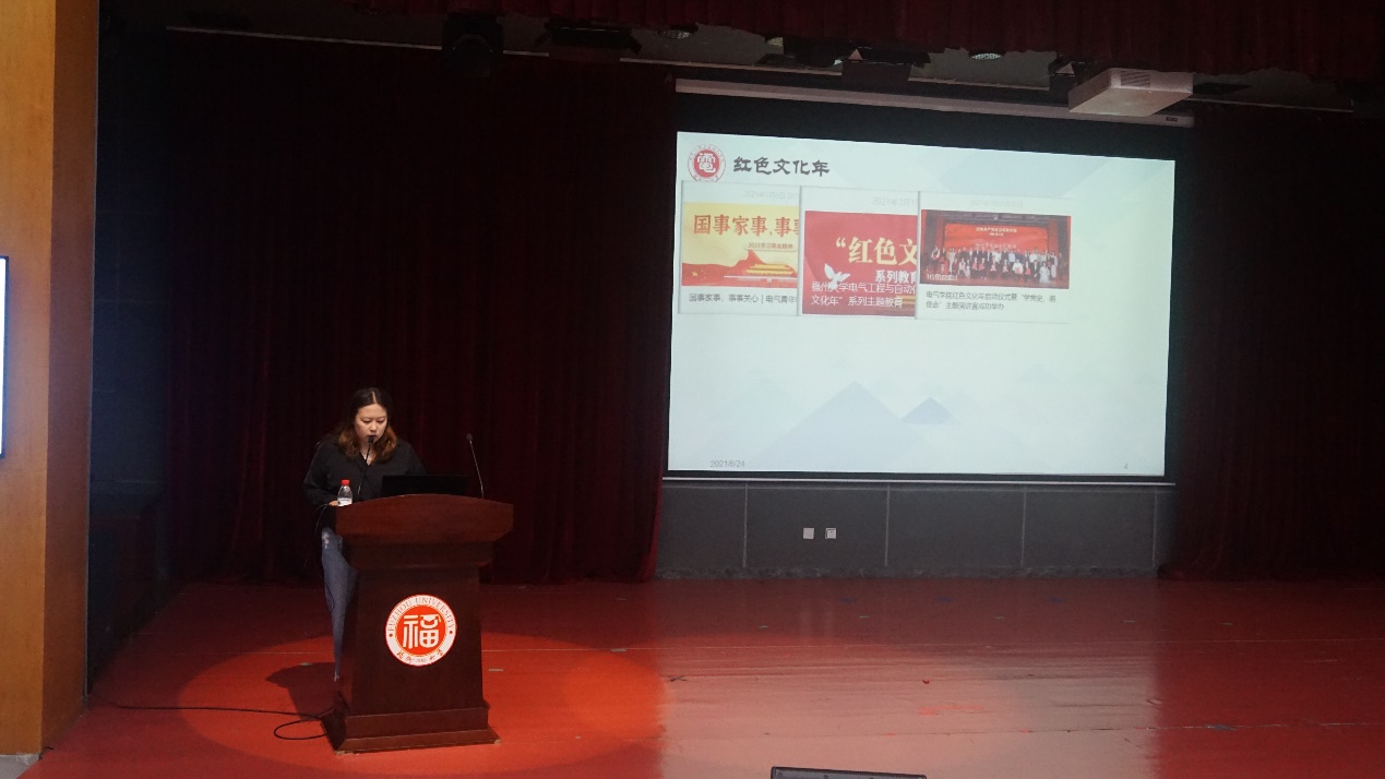 2021学年,是红色文化年、自强创新年、学风建设年。张文萱同学对本学期的所有活动进行了总结,今年是电气学子在文化、体育、思想上都大放光彩的一年,尤其在思政工作方面取得了大丰收,恰逢中国共产党建党百年,麻豆社