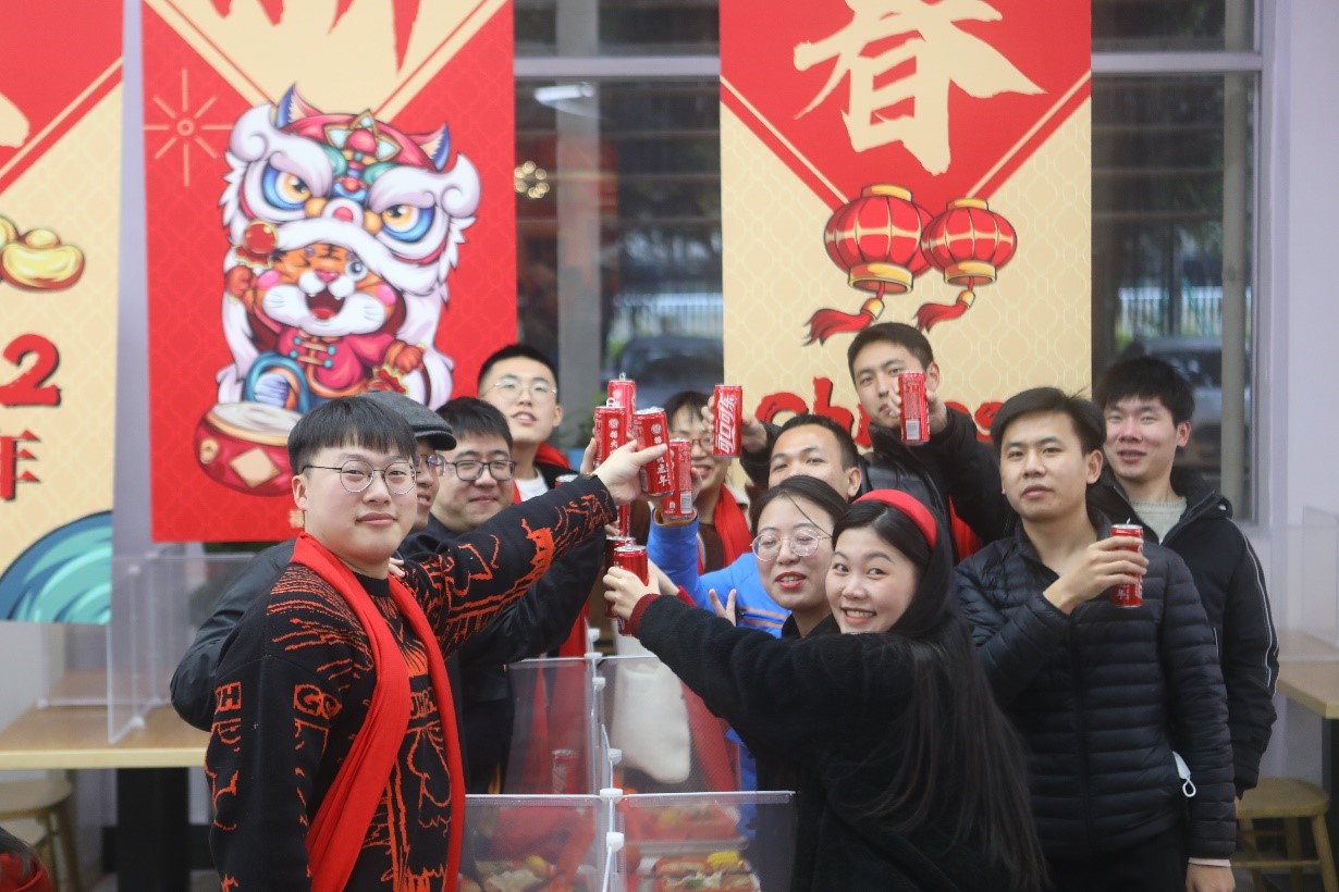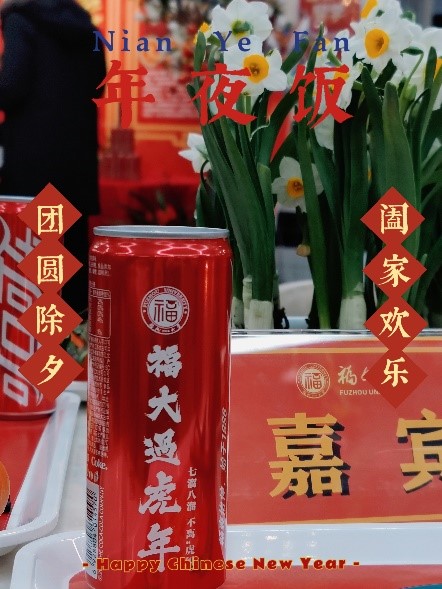 林文冰:我们之中 或因疫情所隔 或因科研紧迫 或因归途遥远 且留在学校共度除夕 学院领导老师给予了恳切的关怀与问候 欢声笑语的茶话会 丰厚的新年大礼 当然还有喜庆的新年红包 学校准备了丰富的年夜饭 佛跳墙 大闸蟹 烤全羊应接不暇 福西安天津各地美食轮番上阵 福大版限定可乐深得我心 壬寅虎年 愿你我胸中有丘壑 不怯过往 不惧未来 踏歌行 笑傲世 永做自我!