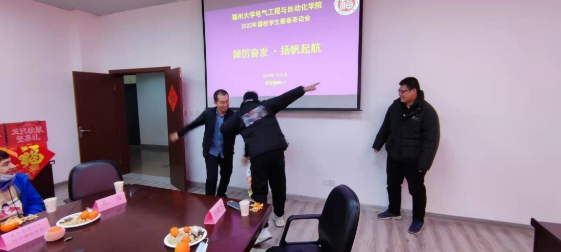 谢臻杰:今年留校是因为自己论文可能写不完了。也是自己唯一一次没有回家的过年。留下来后,我感受到不一样的新年氛围。老师们的亲切关怀以及一波一波的活动,还有丰盛的年夜饭,一群来自五湖四海的留校同学一起欢声笑语,特别温暖。感恩福大,感恩学院,给了我家一样的新年。祝愿我的母校福大越来越好。祝大家新的一年虎虎生威、身体健康。