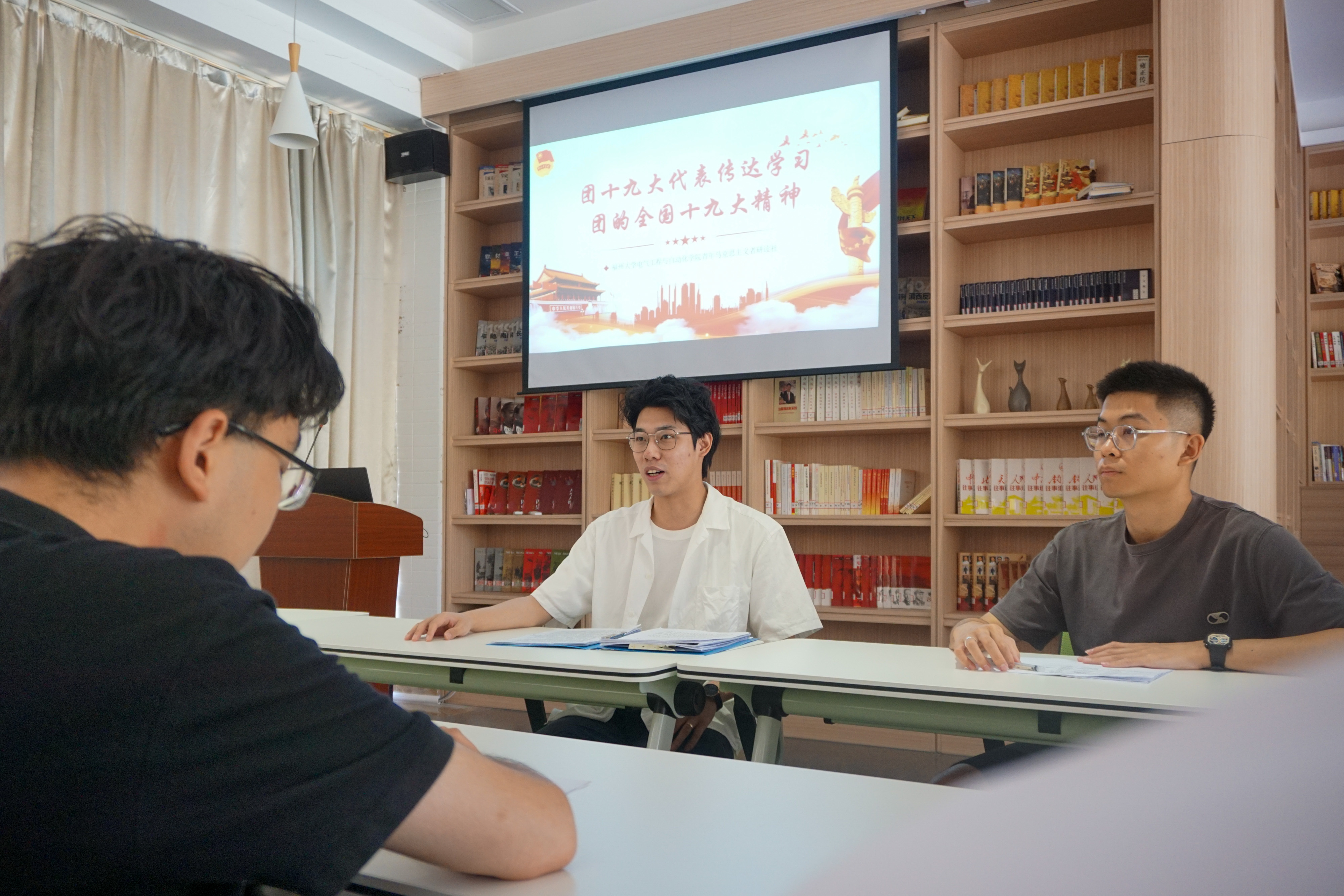 ▲图为真嘉捷代表向与会团员传达团十九大精神