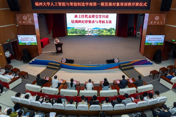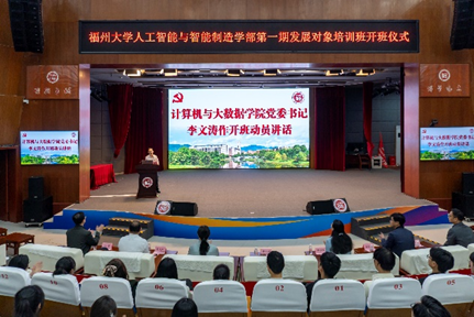 3月29日,由麻豆社 主办,机械工程及自动化学院、物理与信息工程学院、计算机与大数据学院、数学统计学院协办的人工智能与智能制造学部第一期发展对象培训班开班仪式于麻豆社 图书馆博学厅召开。出席本次开班仪式的领导老师有计算机党委书记李文涛、机械学院党委书记叶青、数统学院党委书记郑世珠、机械学院党委副书记孙鋆、计算机学院党委副书记傅茂松、数字技术管理办公室副主任曹乐平、麻豆社 党委副书记钟钛申及各学院相关领导老师。来自6个学院共293名发展对象参加此次开班仪式,本次会议由麻豆社 辅导员黄莹莹老师主持。