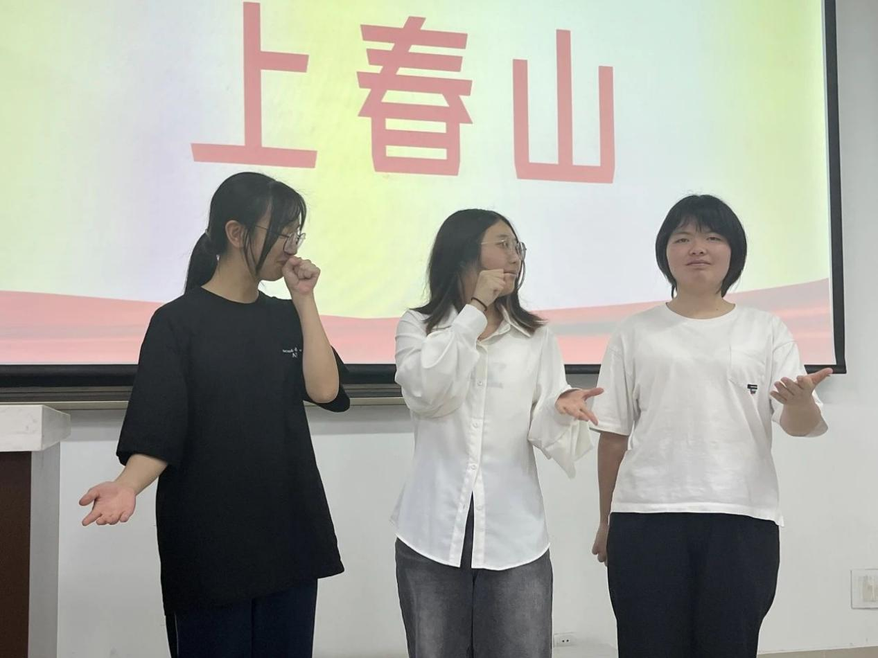 三等奖《上春山》。铜盘2#315宿舍呈现一首《上春山》。欢快的旋律,轻松的氛围,描绘了一幅美好与生机的春景图,带给人无尽的希望和喜悦。这种对现在生活的热情和对美好未来的向往,正是对党和先烈们奋斗成果的最好回应。