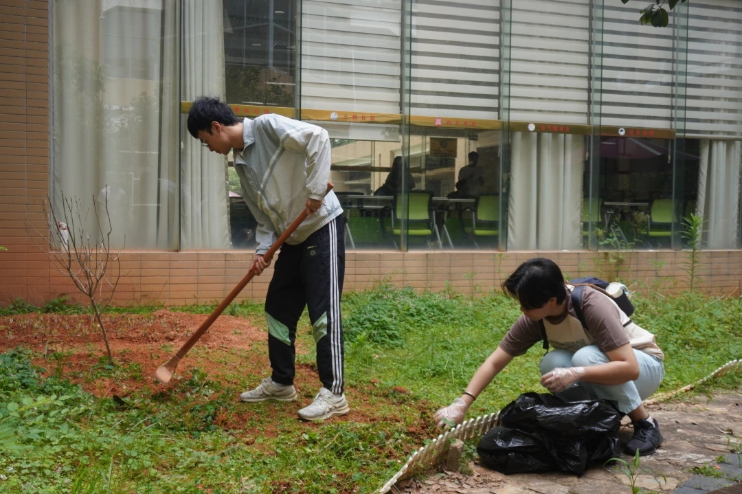 参与成员带着满腔热情和干劲开始了劳动,大家手持扫帚、铲子、锄头等工具,分工合作,有的挖坑,有的打扫,有的浇水,共同努力,对劳动基地进行清洁和维护,让基地面貌焕然一新。