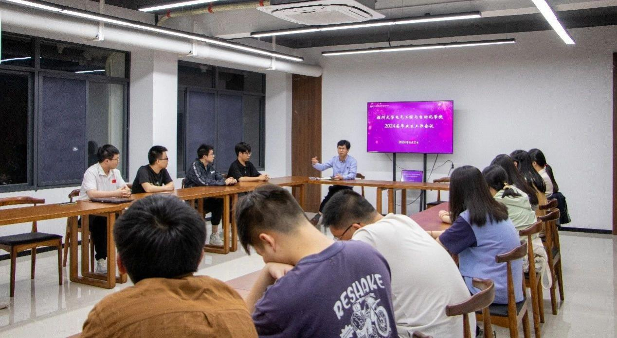 2024届毕业生工作会议在明德苑同观书院召开。会议由学院党委副书记钟钛申主持,辅导员唐龙翰以及2024届学生干部参加。