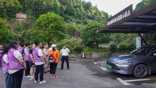 随后,实践队员探访了国家电网的“光储充”能源示范点。在“最美国网人”周道杰师傅的讲解下,了解到下党乡因地制宜,采用以光伏为主、储能为辅的综合能源系统,并结合水力发电,能够保障全乡24小时不间断用电,同时实现汽车充电桩的充电续航功能,向“碳达峰,碳中和”的宏伟目标迈进。