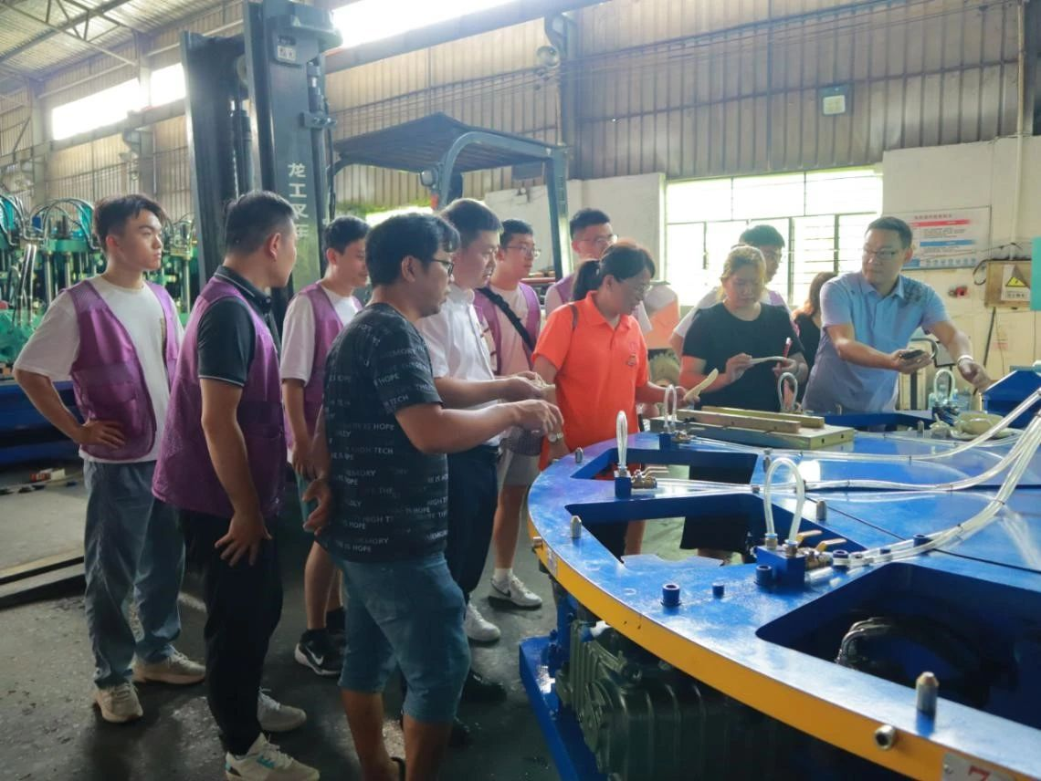 在西滨镇领导的带领下,实践队实地参观了誉城盛机械、一通机械、华宝智能科技公司,并与公司相关成员举行座谈会,详细了解晋江电气工程行业发展现状、产业需求、技术壁垒、未来趋势等,把握产学研合作机会,探讨校企联合培养人才的模式。