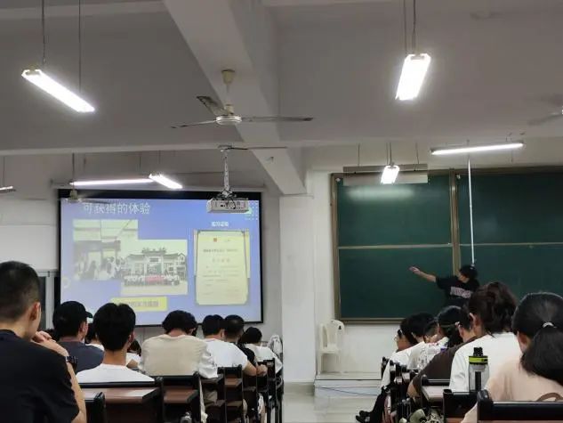 叶立炜同学首先向新生详细介绍了扬帆计划及实习的好处。他指出扬帆计划是帮助在校大学生熟悉真实的工作环境,明确职业方向,不断提高社会化能力和综合就业能力的就业引导计划,主要实习单位覆盖各行各业。参与扬帆计划,可以锻炼同学们各方面的职业能力,收获丰富的实习体验。随后他向同学们分享了岗位选择的建议和简历制作的技巧,并就如何参加扬帆计划的大致流程向同学们做出了详细介绍。