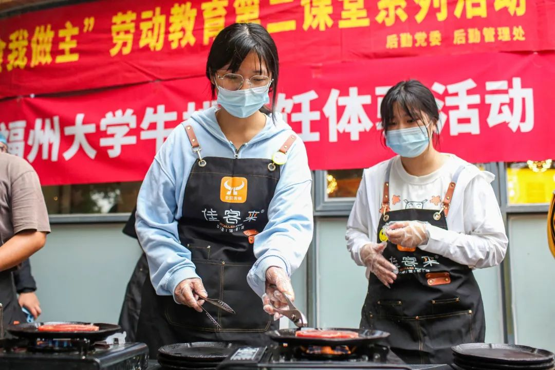 团委实践部、青年马克思主义者研读社在后勤党委的大力支持下开展西餐培训活动,共同制作牛排。