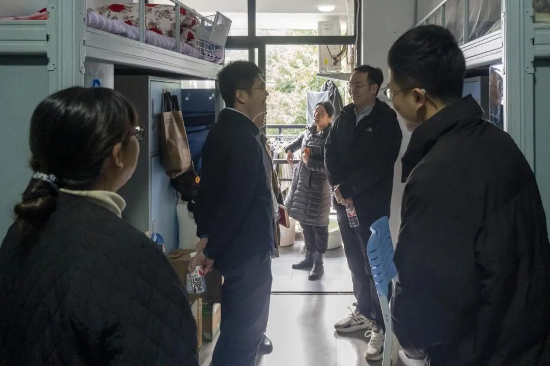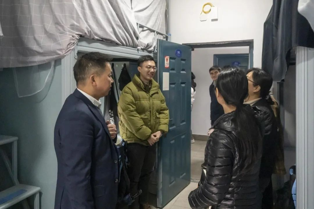 交流会圆满结束后,领导老师们下到宿舍,实地了解学生的居住环境。