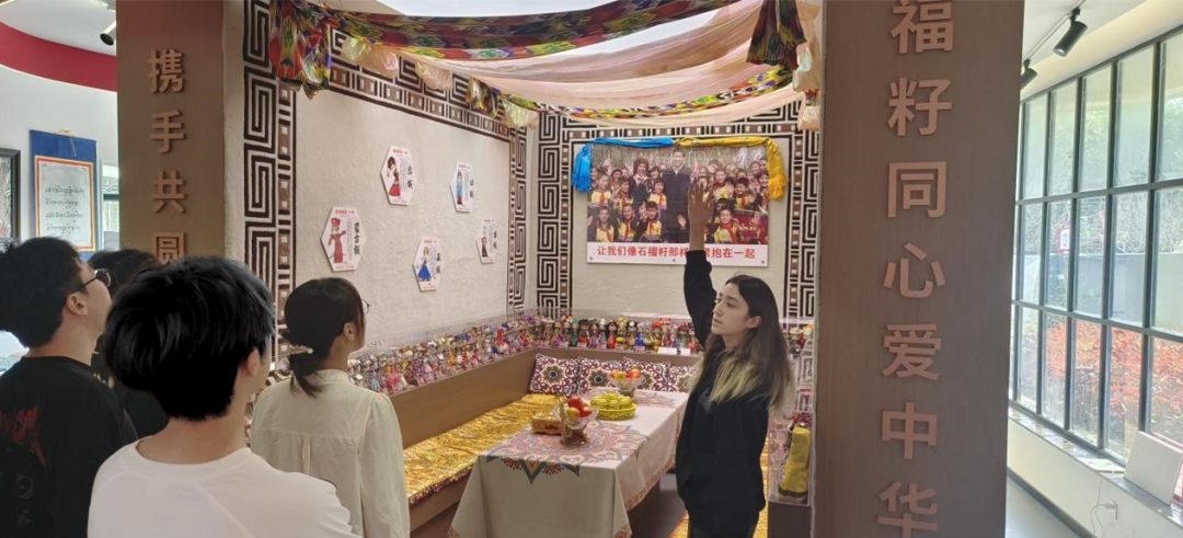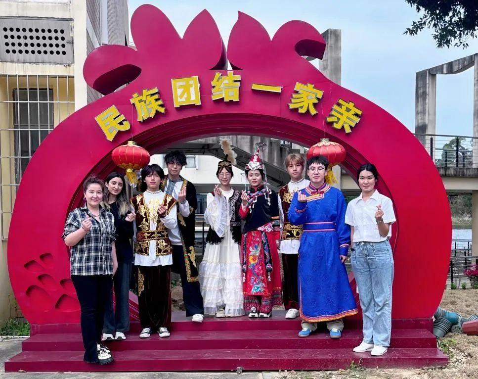 活动尾声,身着不同民族服饰的学子在"民族团结一家亲"的横幅下定格灿烂笑容。刘敏榕老师感慨道:"你们身上的每一根丝线,都是文明长河的分支。"此刻,团结之花不仅绽放在织锦绸缎之间,更在青年心中播下了文化认同的种子。