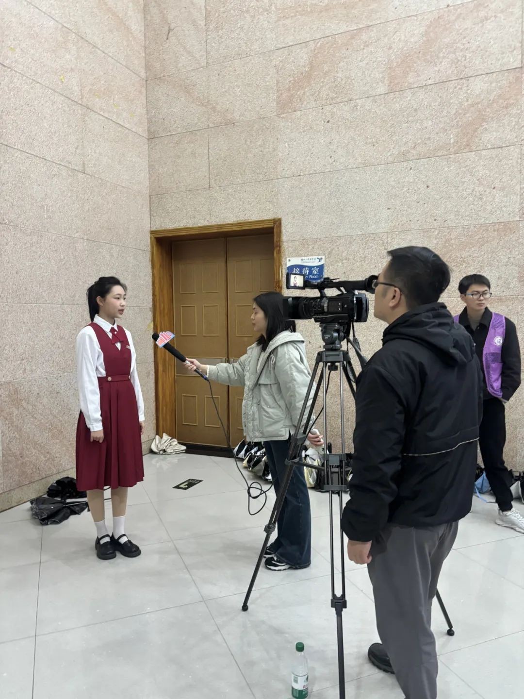 学子接受福州广播电视台新闻110栏目的采访。