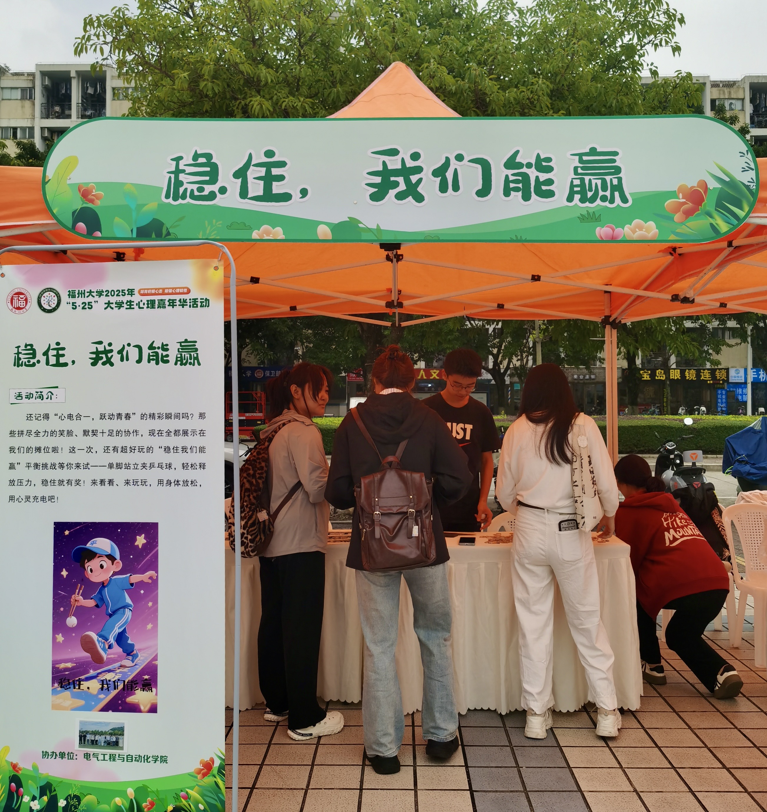 在旗山校区带来了趣味满满的“心电合一,稳住我们能赢”挑战赛,把心理健康和运动巧妙结合。借助学院在校运会“五连冠”的拼搏精神,让同学们在游戏中释放情绪、缓解压力,边动脑边动身,感受身心合一的快乐,稳住,我们真的能赢!