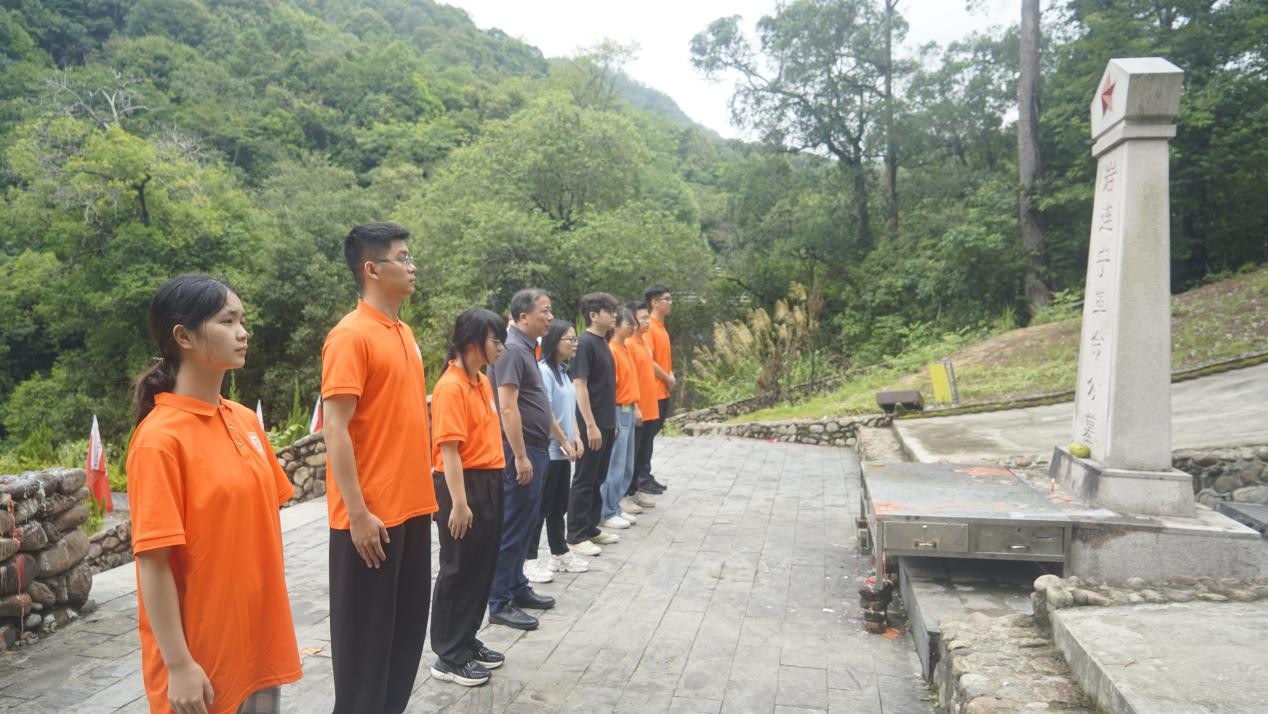 青山埋忠骨,遗愿化鸿图,实践队在新罗区供电公司的指引下,深入山林,前往营斗村岩连宁革命公墓祭奠英烈。多年前,红军战士们浴血奋战,守一方平安;现如今,一代代村民自发守墓,祭烈士英魂。实践队员们也将传承革命先辈们不怕牺牲、敢于奉献的红色精神,在新时代奋勇前行。