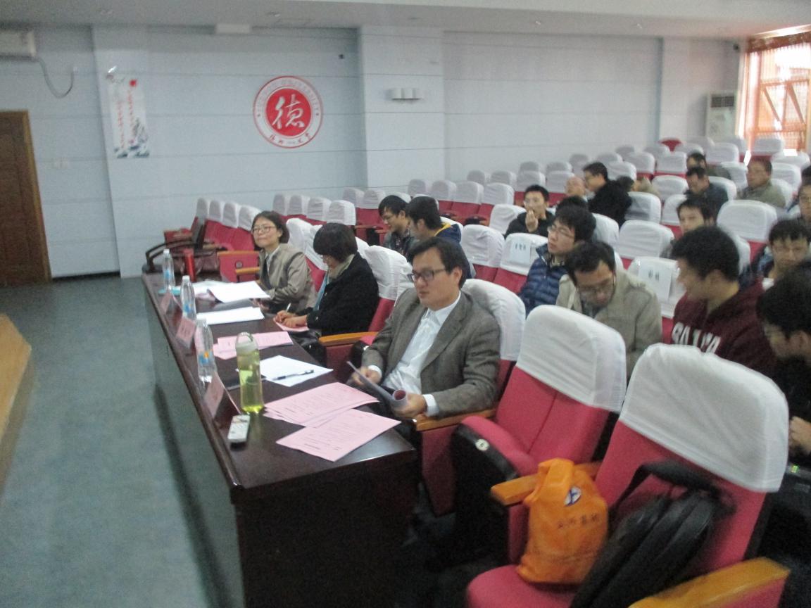 新楚楼多媒体功能厅内举行2014年“中海创杯”研究生学术科技节仿真评比第二场,此次参赛的选手有张登灵、王田、黄云程、曾智强、姚国华、彭萌、康荣波、卢喆等8为同学,比赛有幸邀请到鲍光海老师、刘庆珍老师和汪晶慧老师做评委嘉宾。