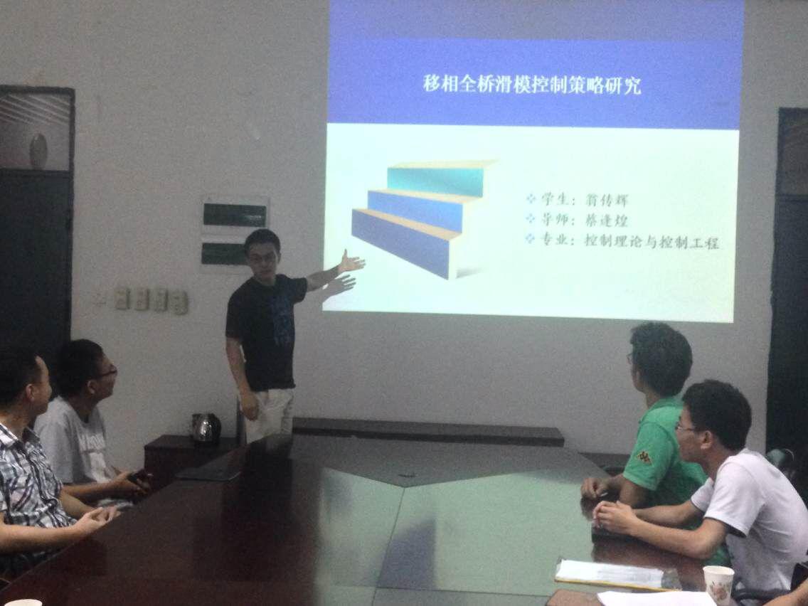 今天,黄朝兴同学讲述了《带激光笔的机器人主动视觉手眼标定》,所提出的关于平移向量的标定方法,对于大多数的机器人都是易于实现的。此标定方法精度高,适用范围广。林俊杰同学就《基于Mean Shift的改进型图像滤波算法》这一主题,阐述了MS算法基本原理、ANBF噪点滤波算法、改进型MS图像滤波算法、FPGA图像处理算法实验平台。王庭桉同学介绍《变电站软导线下料长度数学模型研究》,介绍了变电站软导线受力与软母线下料长度数值计算方法,次计算方法适用性广。谢永超同学论述《基于双目视觉的道路异物检测研究》,指出双目视觉技术具有使用方面、价格低廉等优点而嵌入式 ARM处理速度快、使用方便、操作系统开源等特点。翁传辉同学介绍《移相全桥滑模控制策略研究》,思路清晰,逻辑合理。随后黄金兰同学的《基于MEMS传感器的步态分析及其应用》研究基于MEMS三轴加速度传感器和陀螺仪信号采集的步态分析和足下垂电刺激系统,实现方法简单,且穿戴方便,为足下垂患者康复治疗提供更为有效的方法,进而提高患者的生活质量。最后张思彦同学展示他的《感应加热电磁系统分析与优化》,进行了电磁感应加热的研究,实现了高效率,锅体均热和电磁兼容的目标。