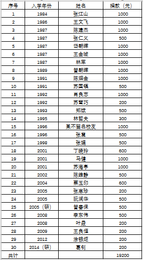 厦门校友会捐赠活动人员名单