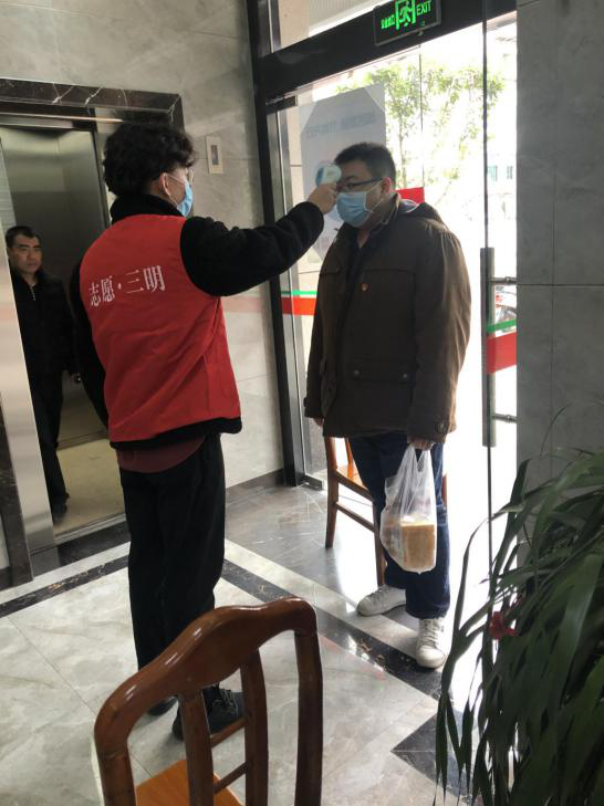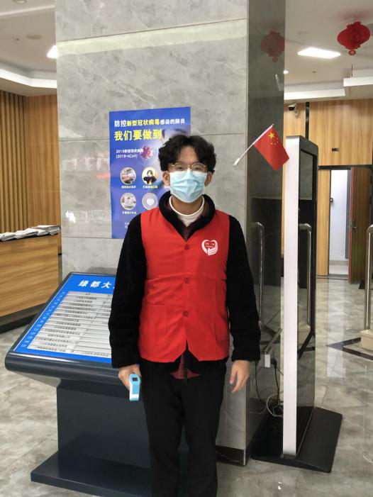 2019届校友夏圣垣同学回乡期间响应三明市文明办号召,积极报名参加疫情防控工作,并通过筛选顺利成为一名光荣的志愿者。他在政府大楼前,对每个进入大楼的人进行体温检测并做好登记、反馈。在服务过程中,既有市委领导出入,也有外来的消毒员、保洁员,他都一视同仁,不漏测、错测任何一位出入人员的体温信息。