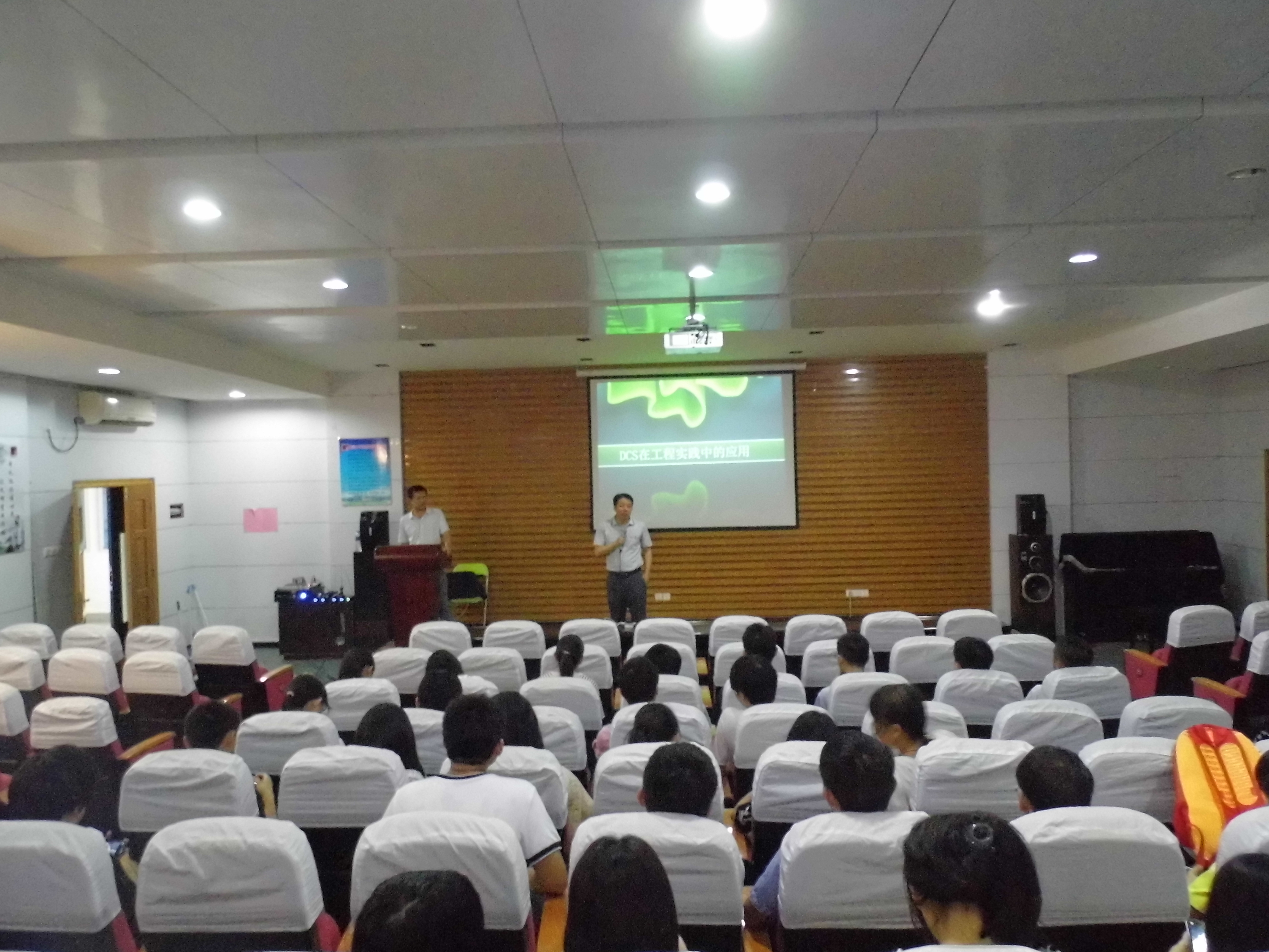 王武老师首先进行了简单的开场白,对张盛校友的到来表示热烈欢迎。随后,张盛校友与大家分享了DCS在工程实践中的应用,从DCS的发展历程、定义以及基本结构三个方面解析,还指出自动化学科发展前景广阔。接着,王武老师热情邀请张盛先生讲述自己的成长经历,张先生讲述了自己独立负责的热电厂DCS系统时的历练过程,他强调在做事时不能仅仅盯着眼前的利益,还要关注国家政策与时事政治的动态,并举他在监管电厂项目时必须遵循国家的环保标准为例,同学们都为他一心扑在工作上的专注所感动。接下来在场同学围绕未来就业方向、薪酬等问题踊跃提问,张校友一一作了耐心的解答。最后,王武老师与张志雄老师分别表达了他们对于大学生活的看法与给同学们的建议。本次讲座在同学们热烈的掌声中落下帷幕。