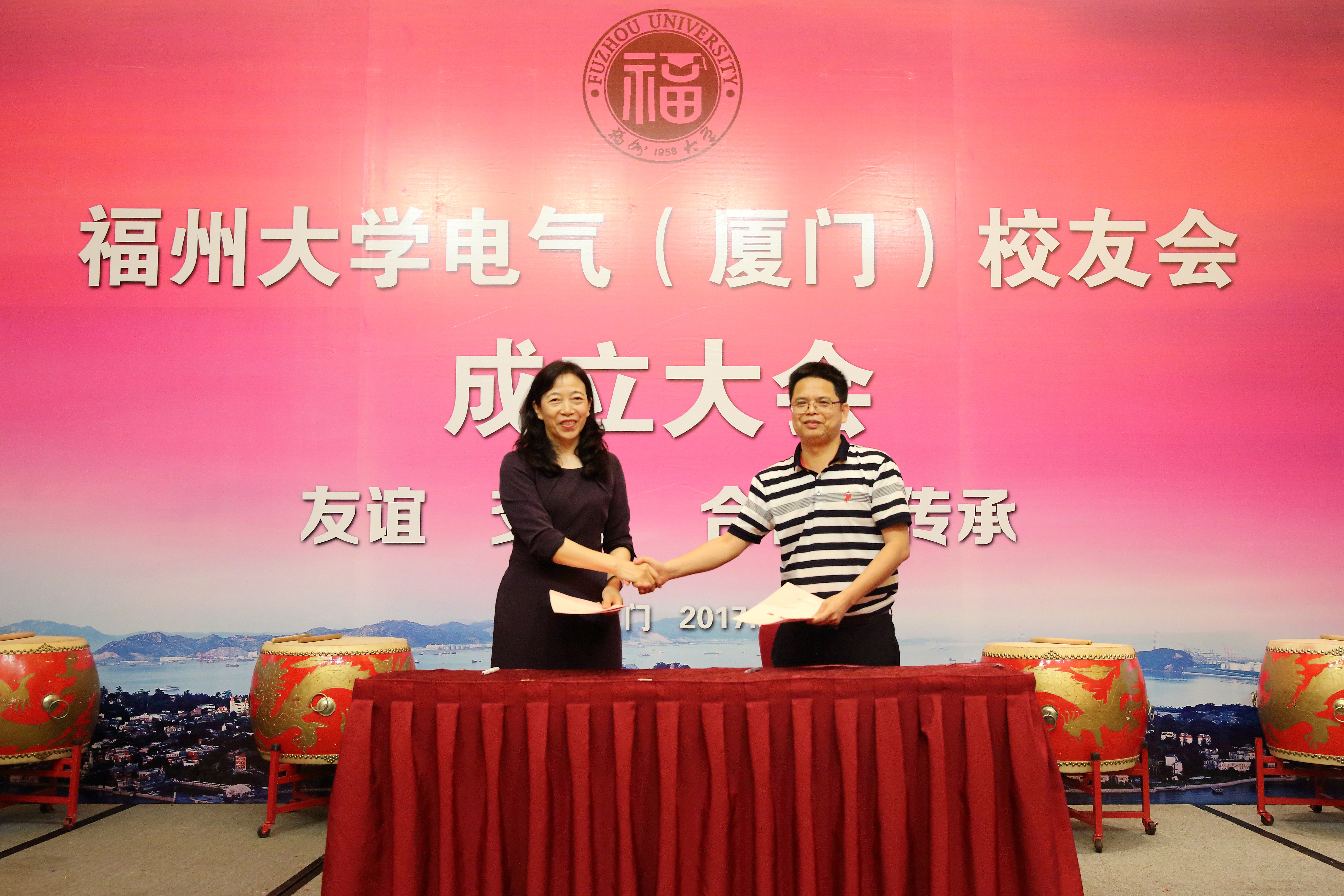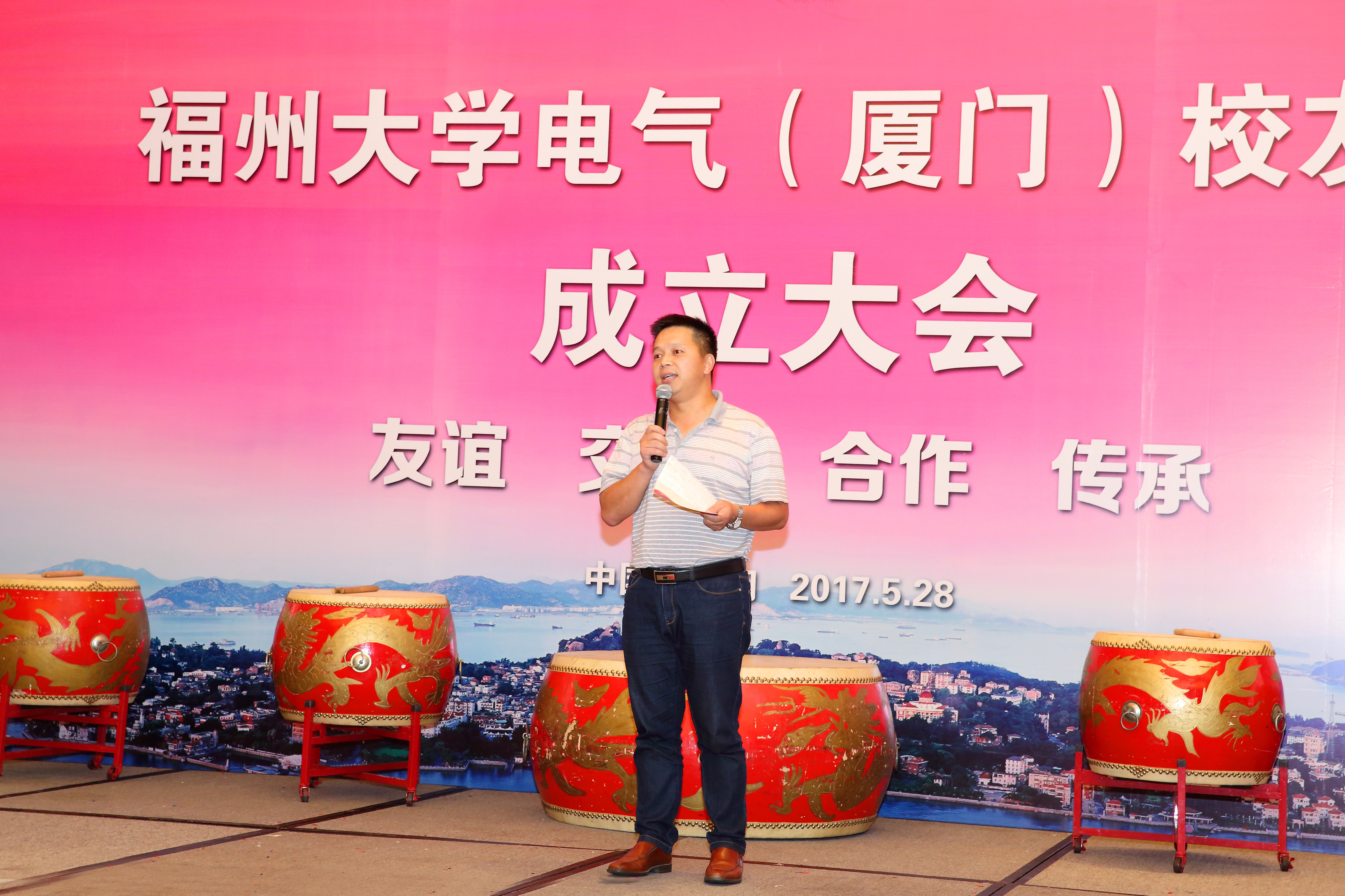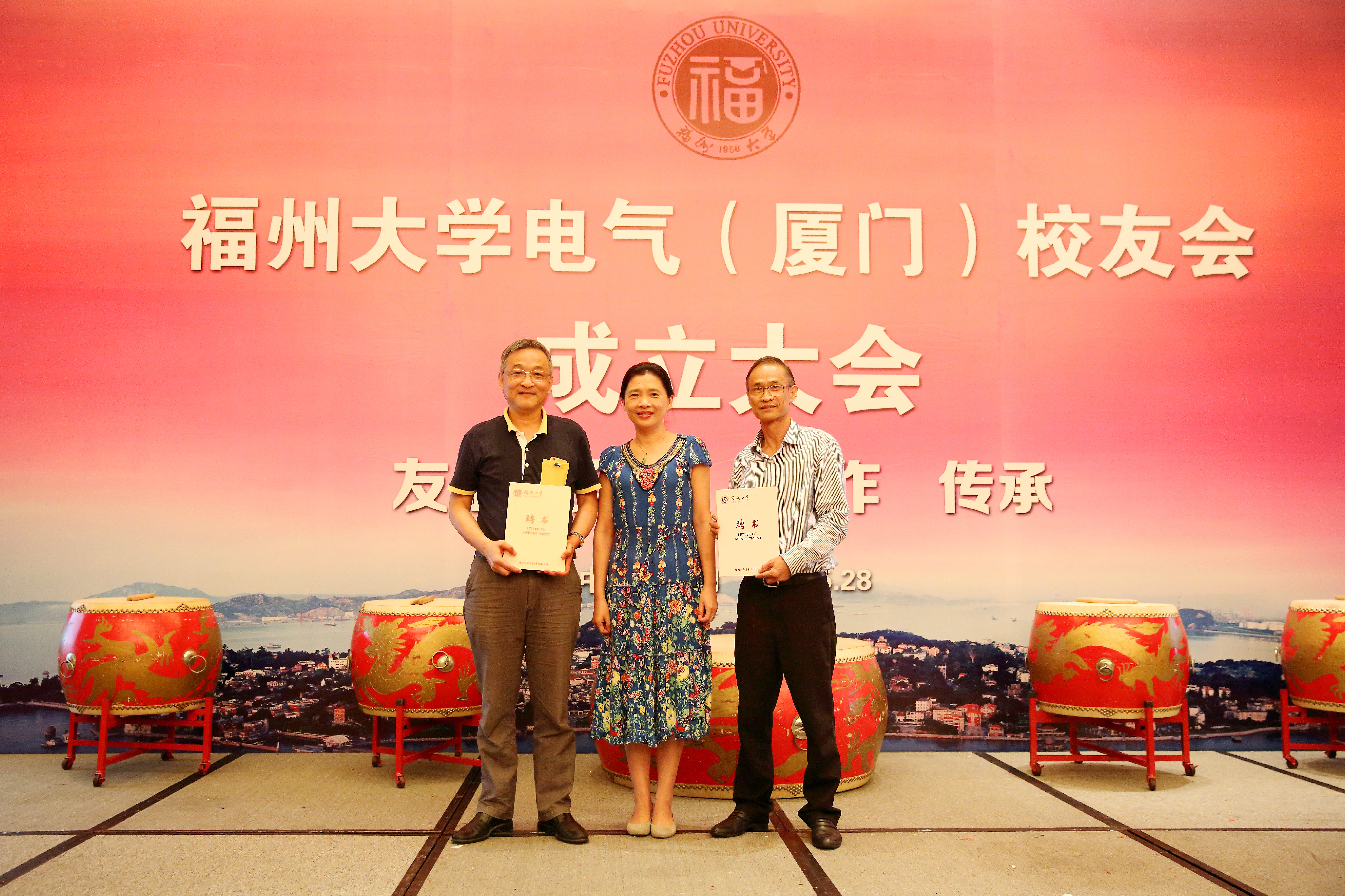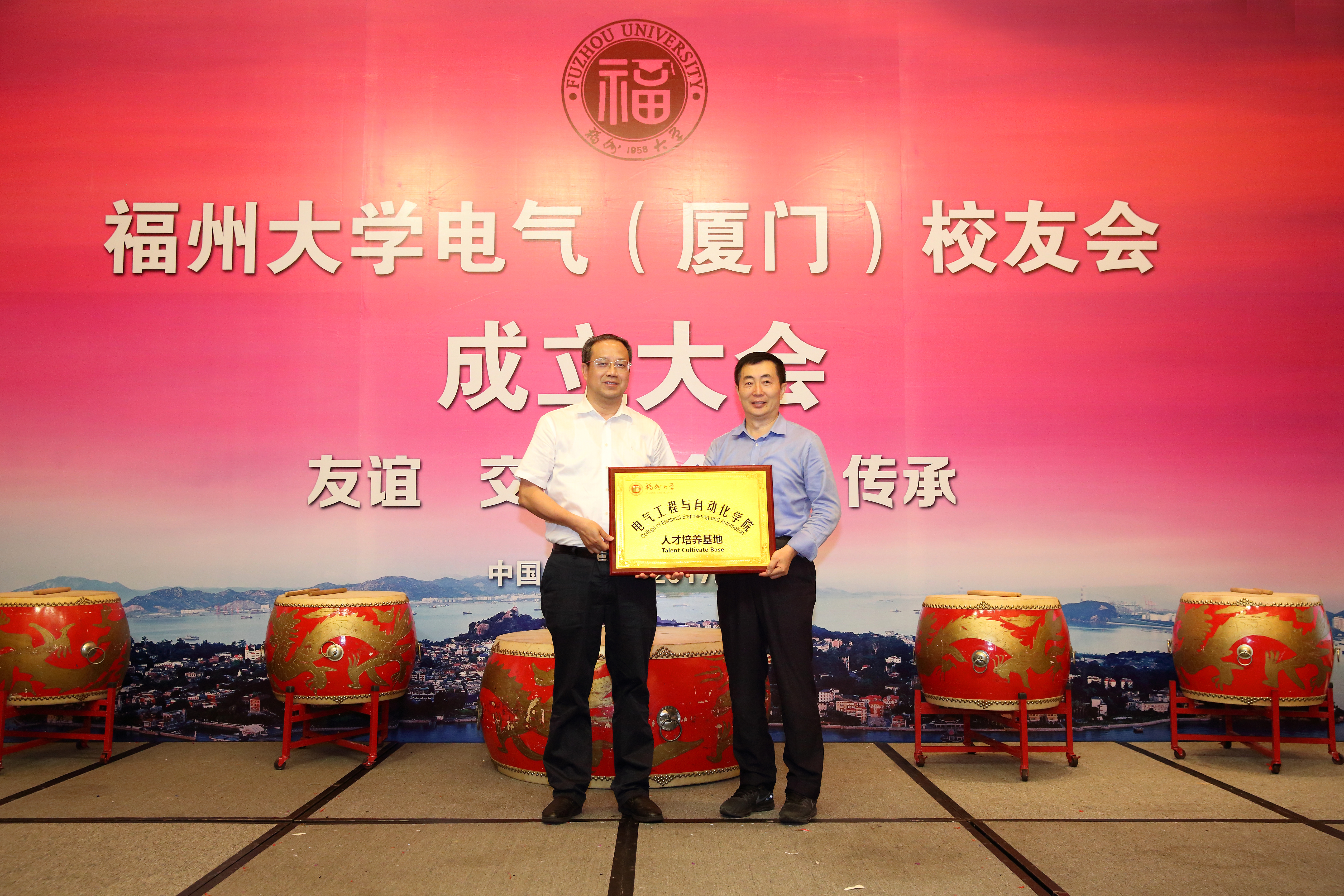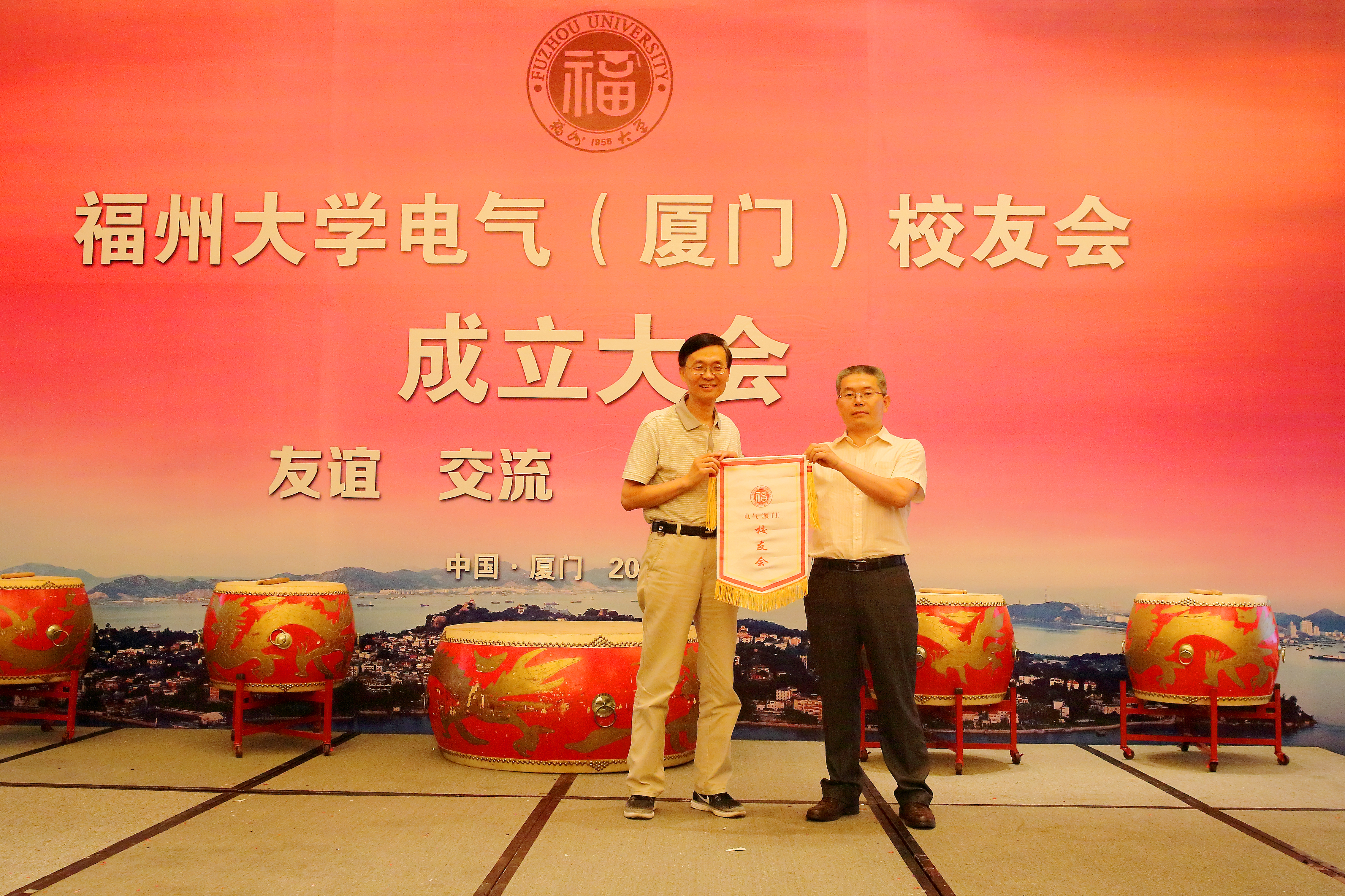 党委副书记黄国辉老师代表学院为大会致辞,电气校友会会长陈为教授为电气(厦门)校友会授会旗,院长许志红教授和麻豆社