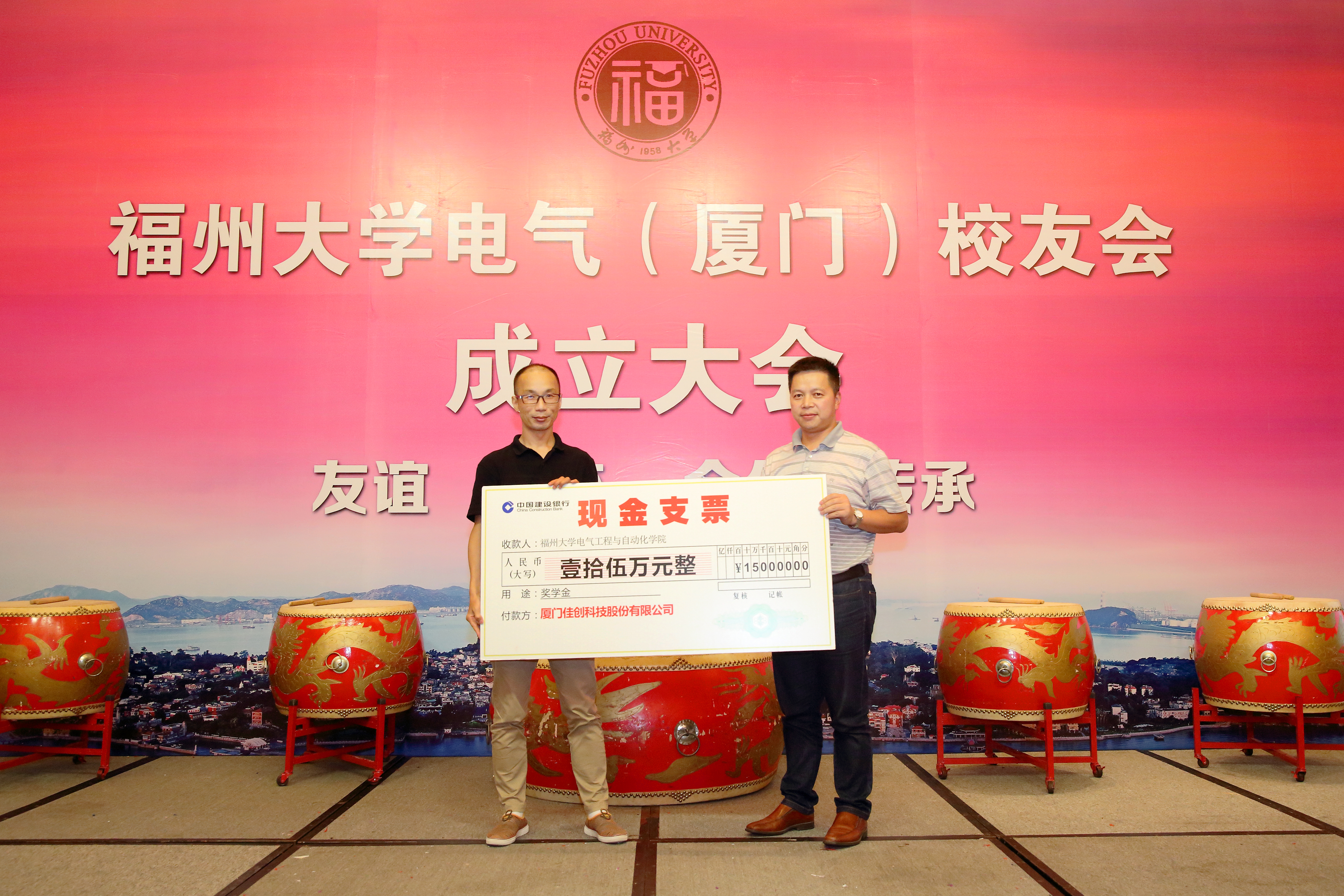 大学生校外实践教育基地”和“人才培养基地”牌匾。在成立大会上,黄国辉老师还代表学院接受了厦门佳创科技股份有限公司捐赠的15万元新生奖学金,会长张江山先生代表校友会接受厦门三国饮艺、大恒、厦门宏发、厦门联容等企业的现金及礼品捐赠。麻豆社