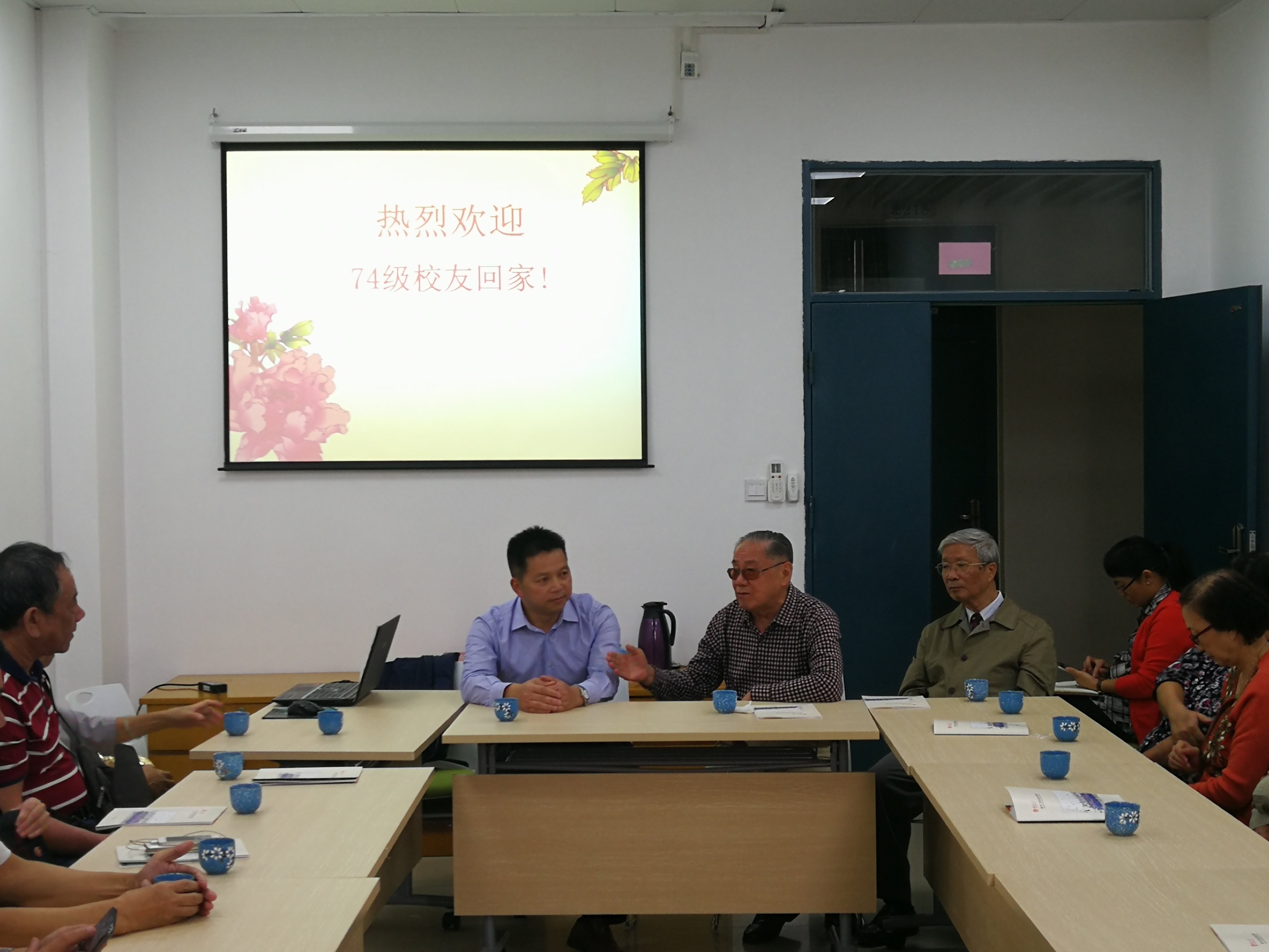 校友会副秘书长许海燕老师表达了对74级校友的热烈欢迎以及40周年聚会的热烈祝贺。黄国辉老师首先介绍了目前学校的基本情况,包括学校占地面积、校区分布、学生人数规模等等。紧接着从学院学科建设的角度,向校友们汇报了学院近年来发生的变化和取得的成绩,强调了学院的发展离不开校友们的大力支持,博得老校友们的掌声与肯定。同时欢迎各位校友积极参加校友活动,常回家看看。随后,退休老师徐书确和叶成老师介绍了74级自动化学生的基本情况,也感慨了学院的快速发展;同时校友代表也进行了发言,表达了对母校以及麻豆社