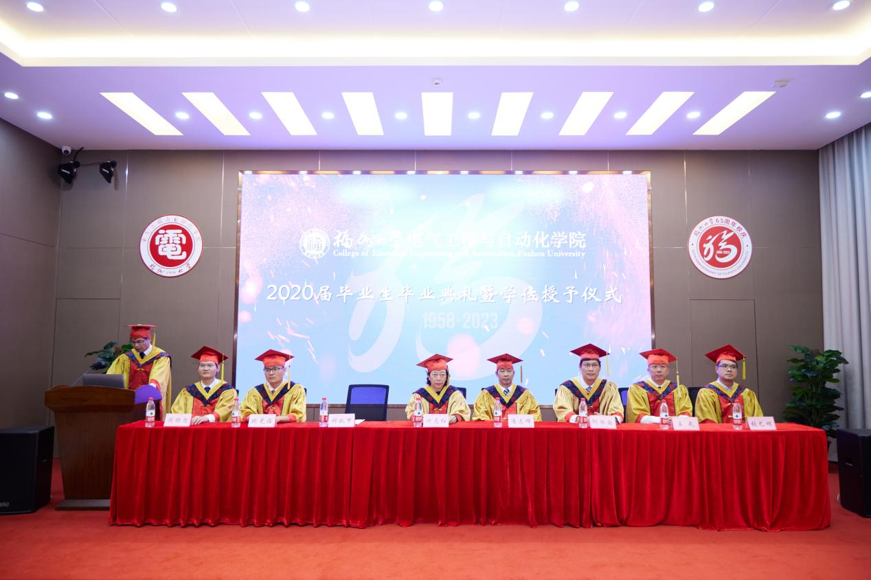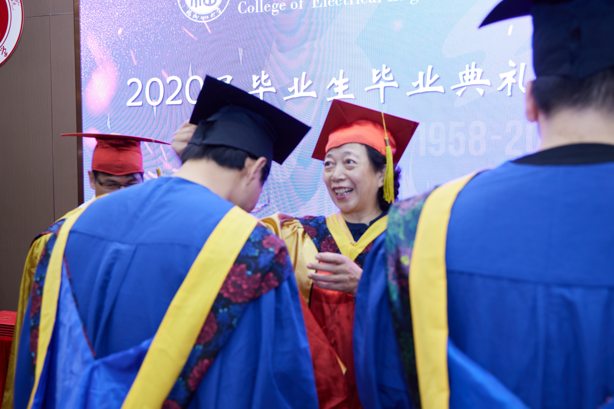65周年华诞为2020届毕业生补上毕业典礼。院党委书记潘志辉,院长许志红教授,院党委副书记钟钛申,副院长邵振国教授,副院长王武教授,院长助理鲍光海教授,院长助理张艺明教授,院学位委员会委员周扬忠教授,建筑电气与智能化系主任林琼斌教授,实验室中心教工党支部书记陈建国教授,先进电力技术(国际)研究中心主任金涛教授,各年级辅导员等出席典礼,与15名研究生毕业生、56名本科生毕业生共赴这场久违的浪漫。典礼由院党委副书记钟钛申主持。