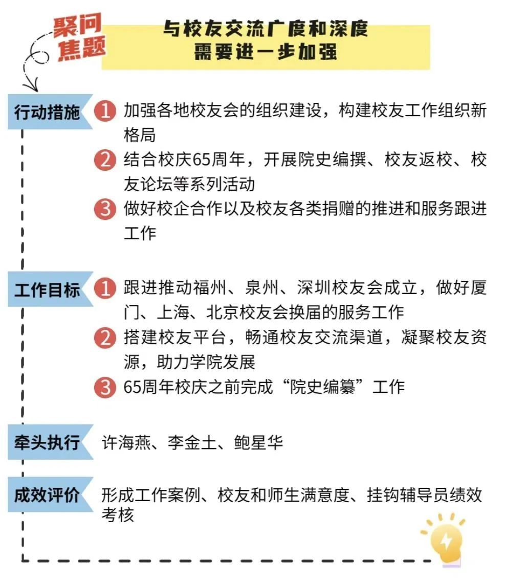 与校友交流广度和深度有待进一步加强这一问题,学院积极推进校友工作。