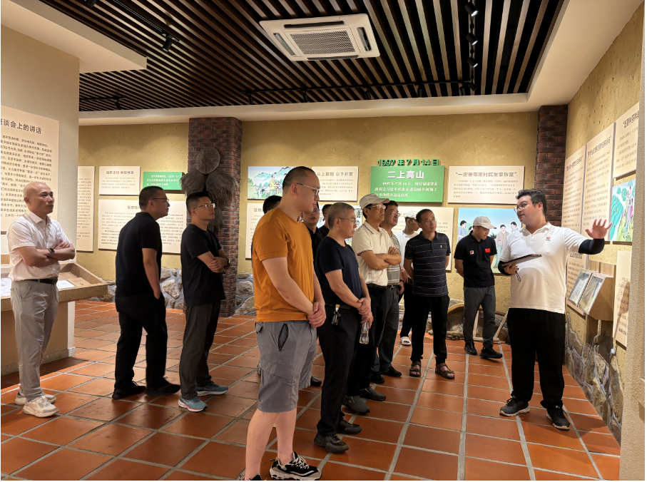 抵达高山党校初心使命馆后,在讲解员的带领下,校友们仿佛穿越时空,见证了军营村与白交祠村牢记嘱托、感恩奋进,遵照习近平总书记的指示,“山上戴帽,山下开发”,走出了一条脱贫致富的生态发展道路。