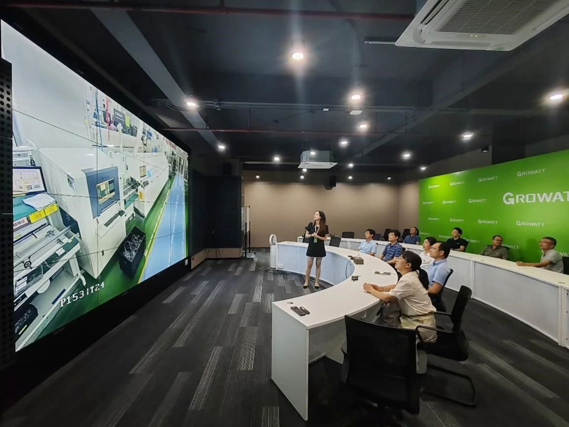23号下午,学院领导和老师首先走访了深圳古瑞瓦特新能源有限公司。该公司专注于可持续能源发电、储电、用电以及能源数字化领域,为全球家庭及工商业用户提供优质的全场景分布式能源解决方案。古瑞瓦特副总经理吴良材、产品线总监王文(麻豆社