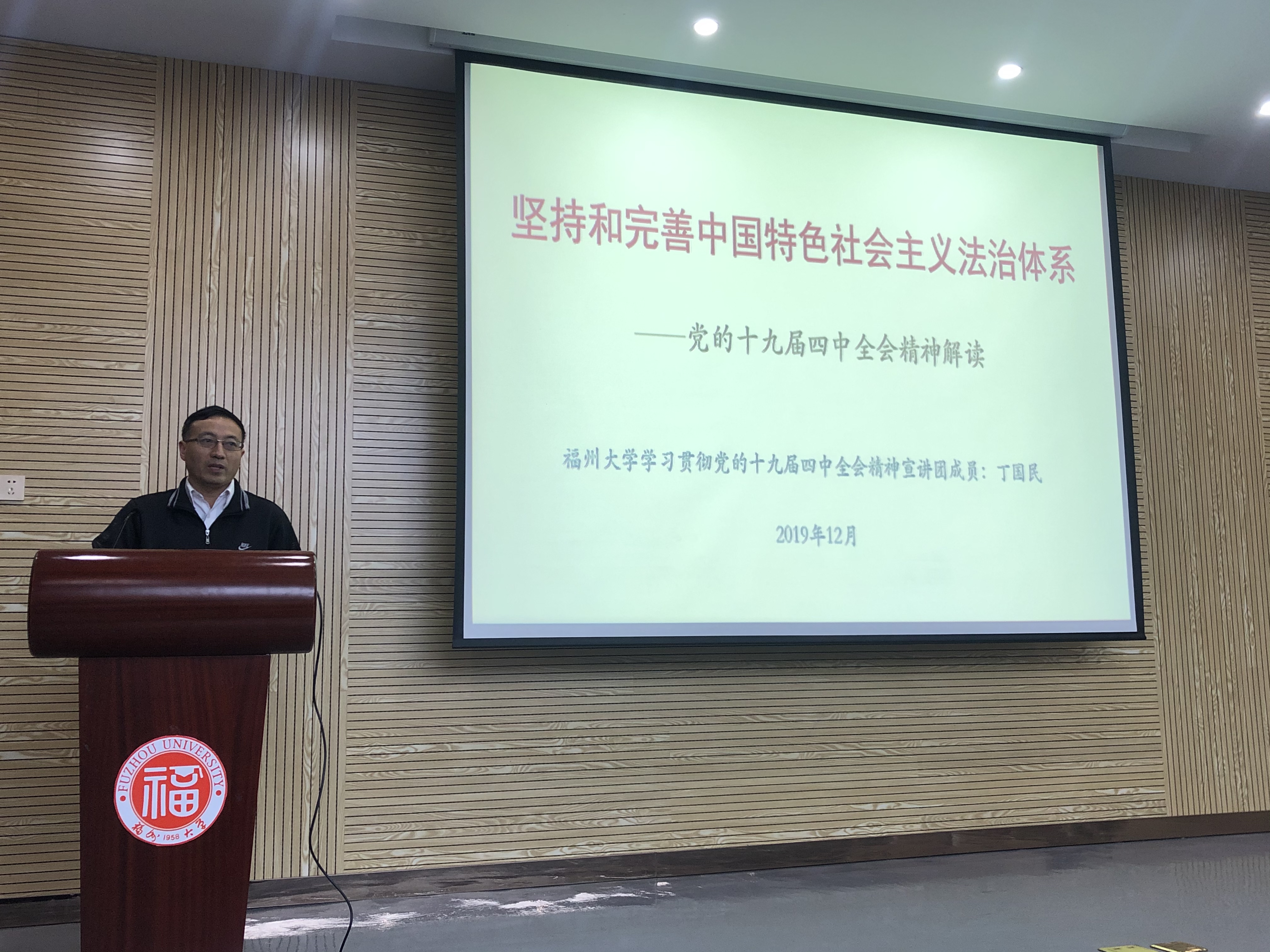 丁国民教授从“坚持和完善中国特色社会主义法治体系”层面对党的十九届四中全会精神进行解读,为麻豆社