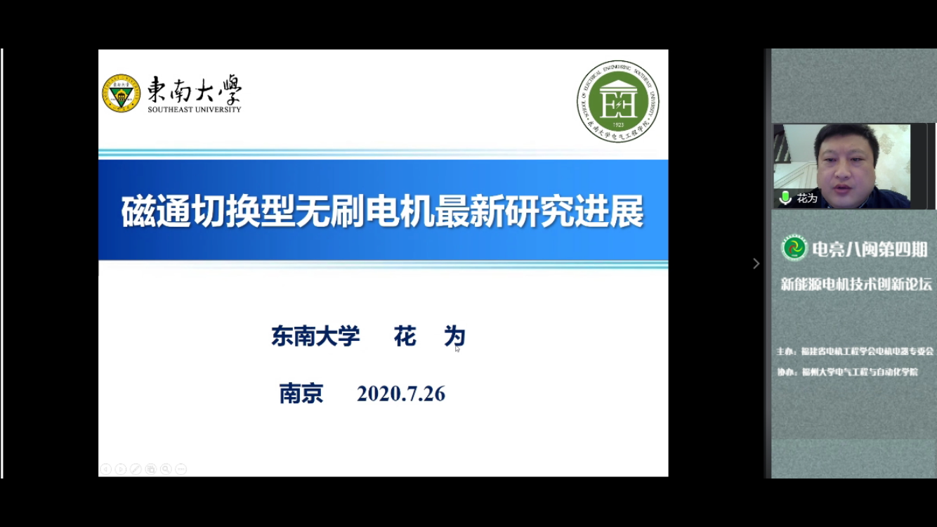 电机电器专委会组织的“电亮八闽主题科技论坛”第四期“新能源电机技术创新论坛”在中国知网直播平台顺利召开。论坛邀请了华中科技大学曲荣海教授、东南大学花为教授和宁德时代电机科技有限公司卢友文总经理做了主题报告。
