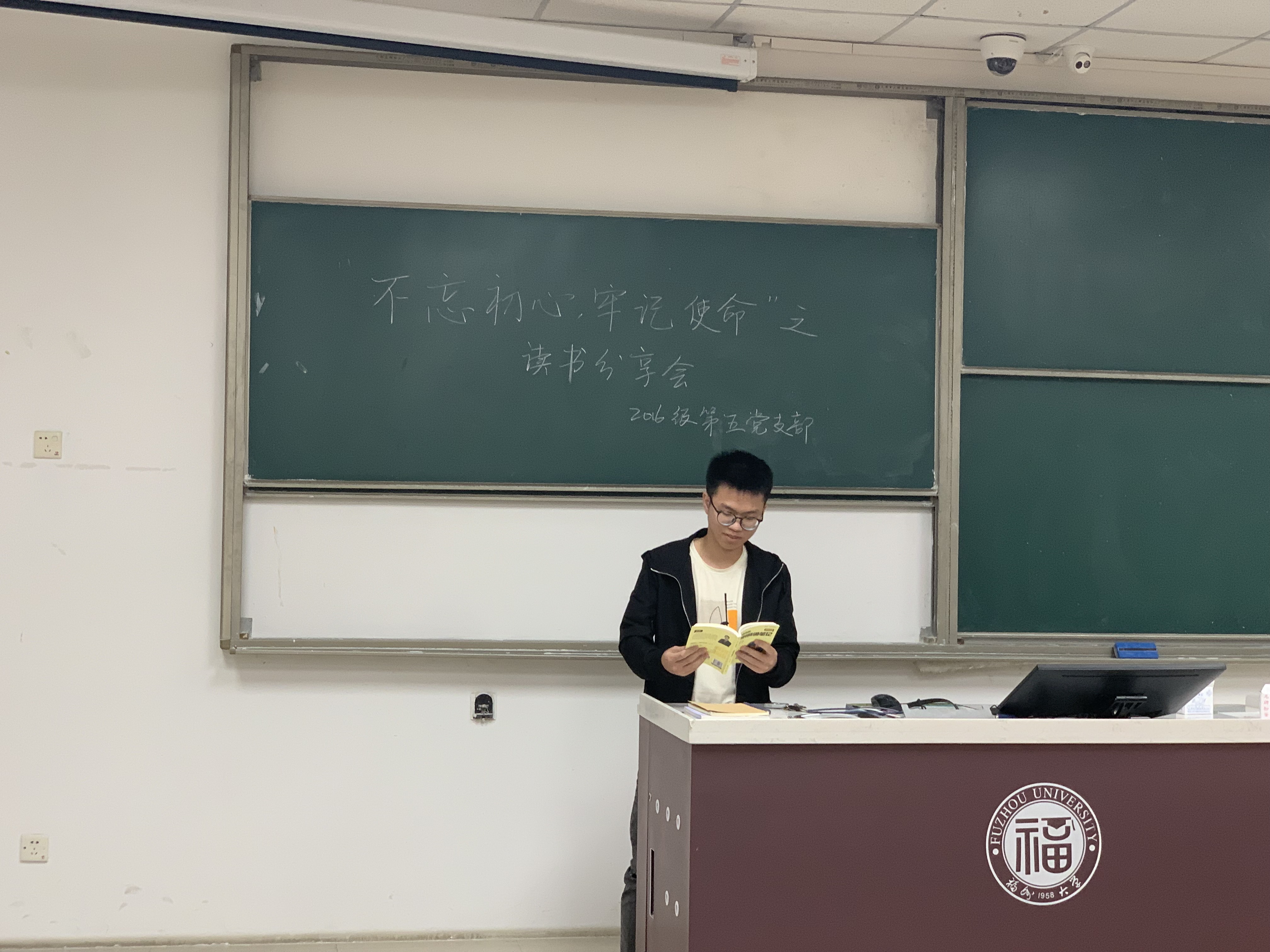 2016级第五学生党支部于教学楼西3-204开展“不忘初心、牢记使命”主题教育活动之读书分享会。党支部全体党员参与了此次读书分享会。