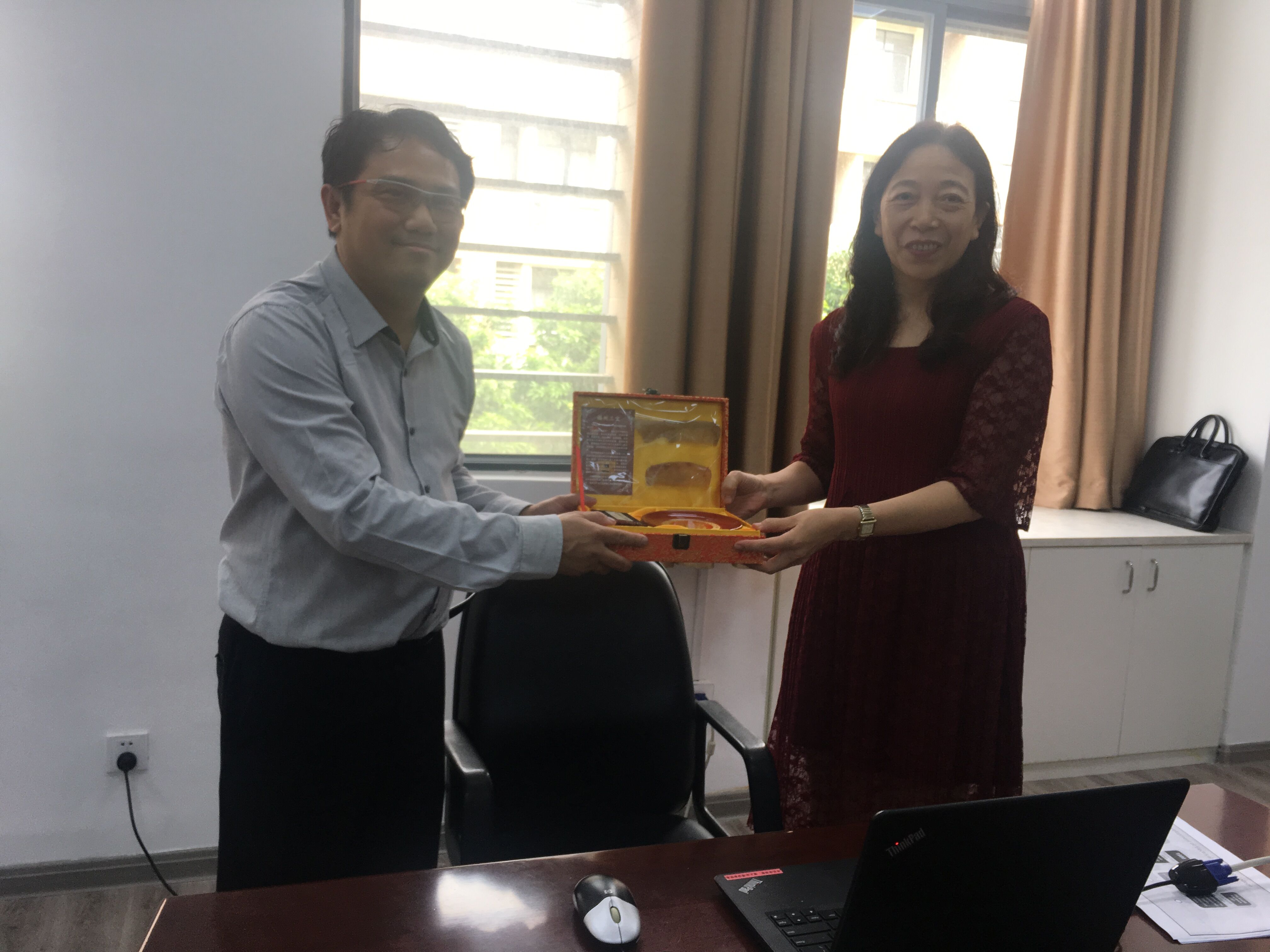 院长许志红教授与教学副院长薛毓强教授热情接待了泰国客人,双方在培养计划、教学模式、毕业要求等方面进行了深入的交流和探讨。许志红教授和塔纳奇教授在会后互赠了礼品,并邀请泰国客人参观了麻豆社