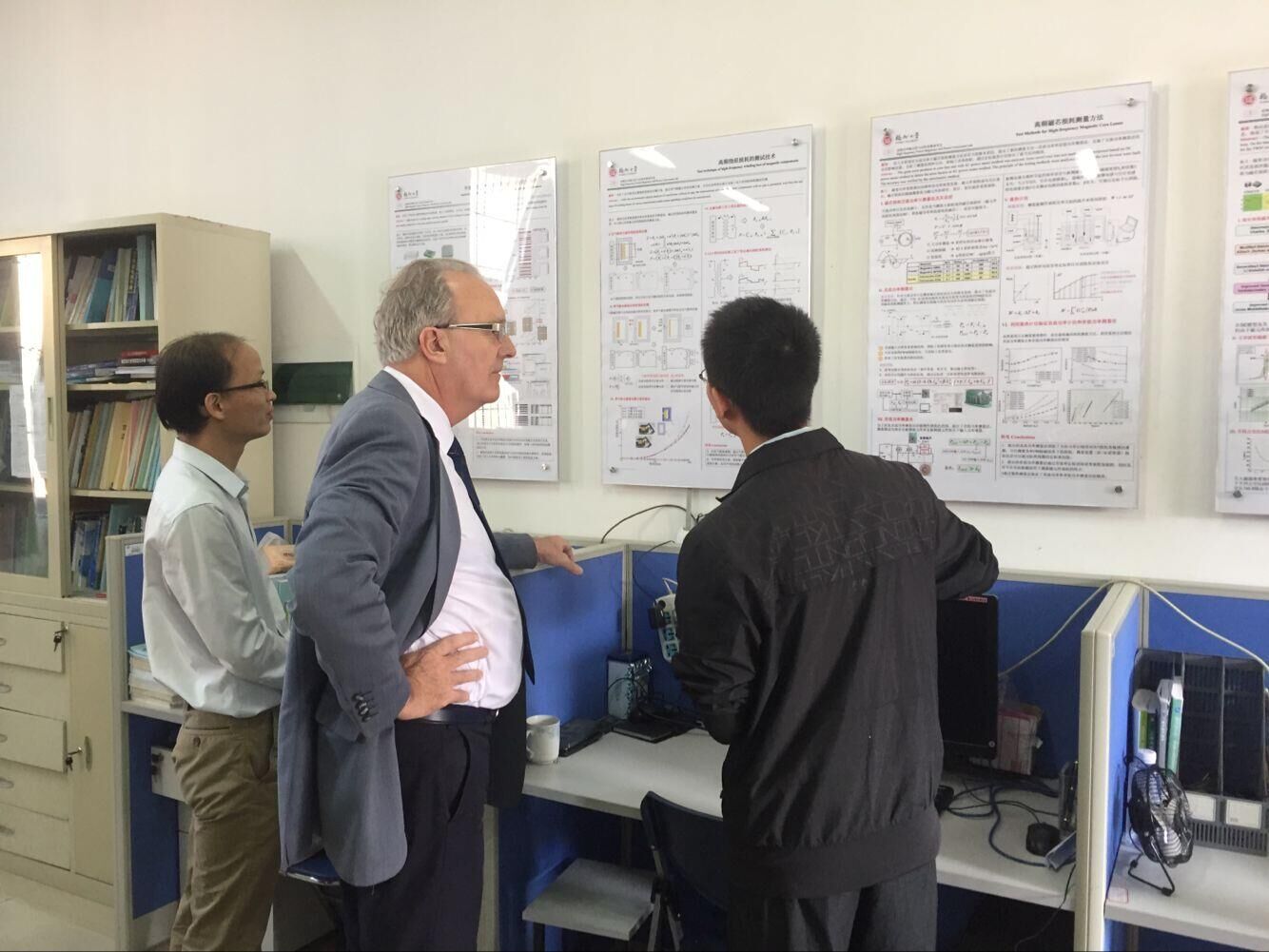 高频功率磁技术方面的研究成果,Hurley教授表示了极大兴趣,给予了极高的评价,并进行了深入交流。下午Hurley教授就“电力电子高频磁技术面临的机遇和挑战”为题给广大师生做了客座学术讲座。