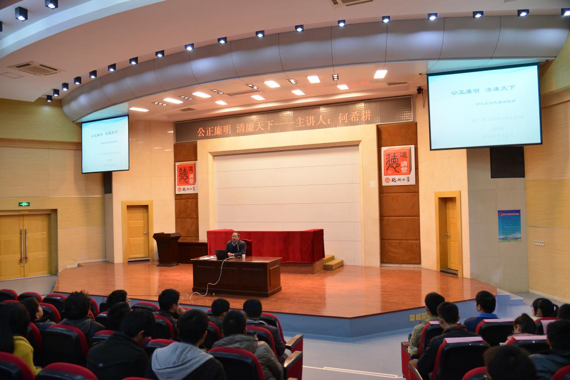 “中海创杯”研究生学术科技月闭幕式结束后,学院党委书记何希耕老师为研究生带来报告《公正廉明清廉天下》。