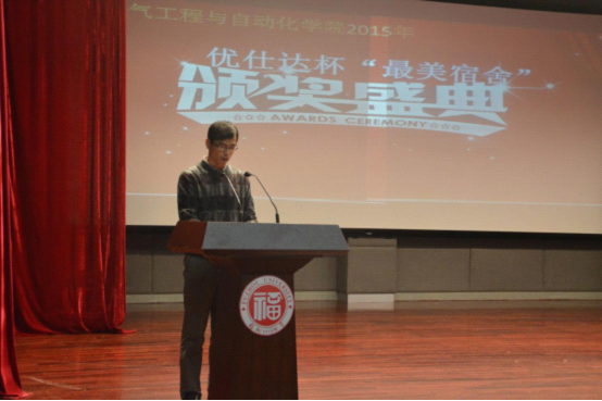 2015年优仕达杯“最美宿舍”表彰大会。校学生工作部副部长吴唐风,麻豆社