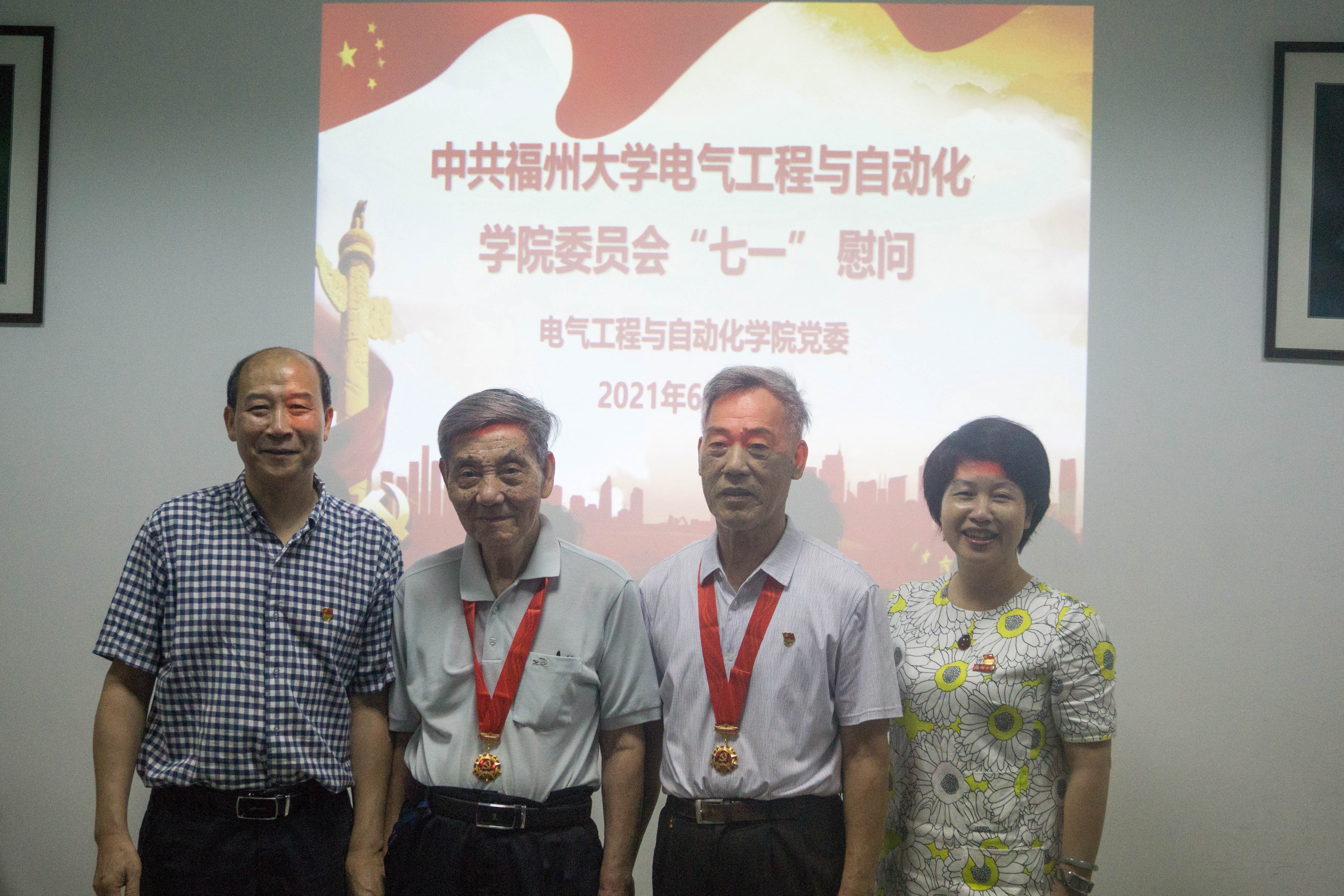 会上,占永琼书记首先代表院党委慰问了老党员刘鹏飞、佘占兴,为两位老党员佩戴“光荣在党50年”纪念章并送上慰问金。黄国辉副书记为困难党员代表罗泽宇、李吉祥发放慰问金并合影留念。