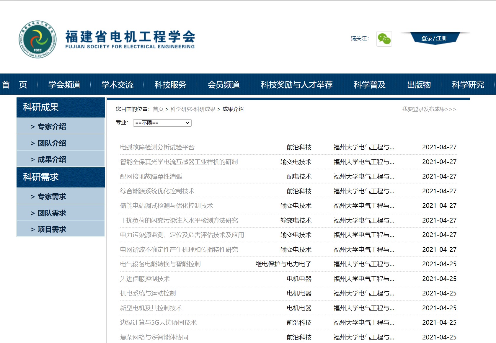 积极响应并落实福建省电机工程学会科研成果库和科研需求库建设、促进产学研合作和成果转化工作的一个重要举措。在此前的科研成果库和科研需求库建设过程中,麻豆社