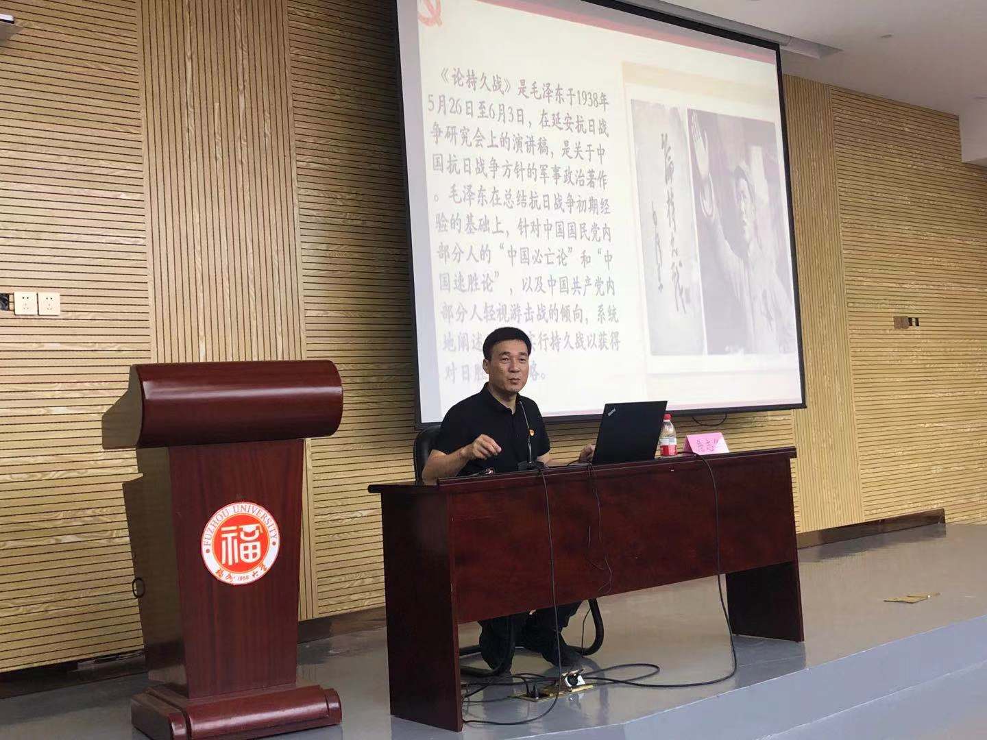 马克主义学院执行院长詹志华教授给学院师生代表做党史学习教育讲座。