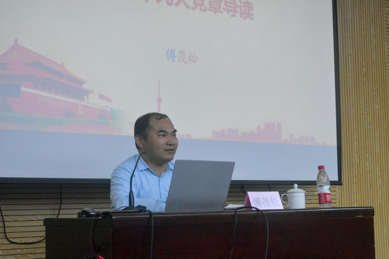 分党校第31期入党积极分子培训班第二讲《学好党章,积极向党组织靠拢》在新楚楼北230报告厅举行,计算机与大数据学院党委副书记傅茂松老师为本期入党积极分子学员授课,旗山铜盘两地同步进行。