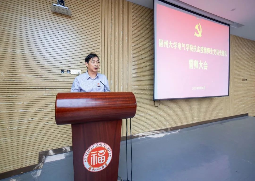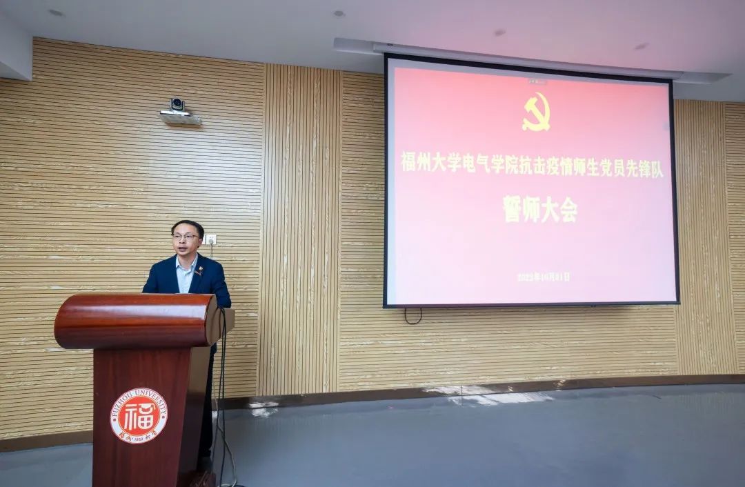召开抗击疫情“师生党员先锋队”誓师大会,响应落实校党委关于充分发挥各级党组织和广大党员干部作用打赢疫情防控歼灭战的通知精神,把电气师生党员学习贯彻党的二十大精神化为守牢疫情防控底线和提升线上教学质量的实际行动,坚决打赢疫情防控歼灭战。学院党委书记潘志辉、副院长王武和全院师生党支部书记、党员先锋队代表、全体政工干部线下线上参加誓师大会,大会由学院党委副书记鲍星华主持。